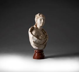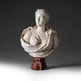 L'ampia veste modellata a larghe pieghe trasversali che lascia scoperta la spalla destra e parte del seno, appena trattenuta dalla tracolla della faretra, si sviluppa nei modi del primo barocco romano influenzato dai modelli algardiani e berniniani