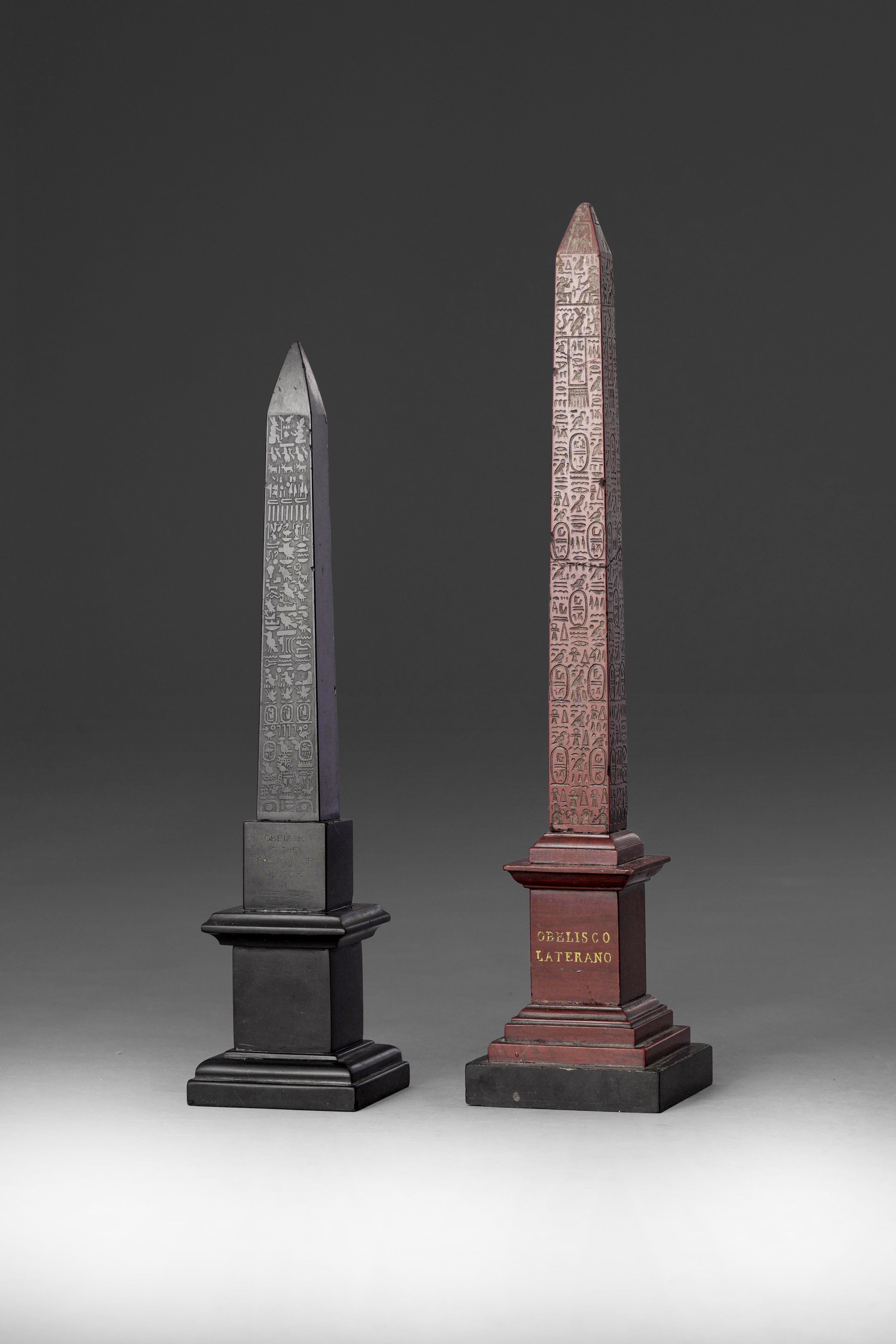 Obelisco del Laterano e obelisco di Luxor. Roma, XIX-XX secolo rispettivamente cm 30 e 35