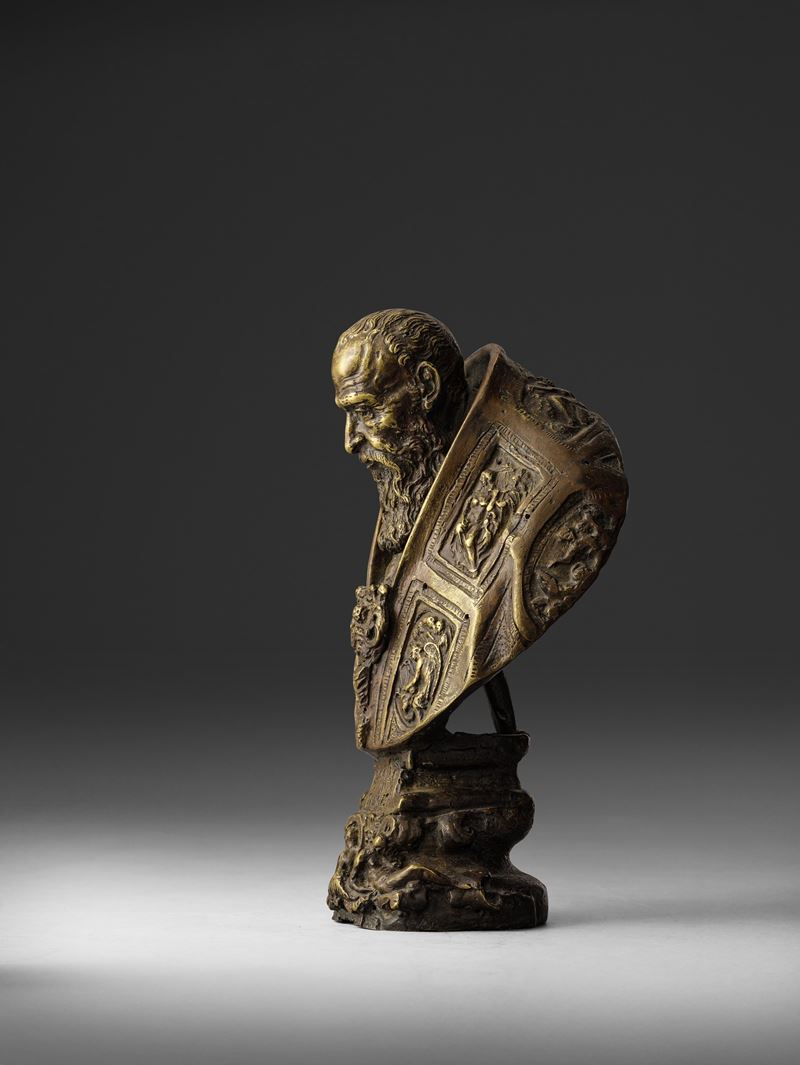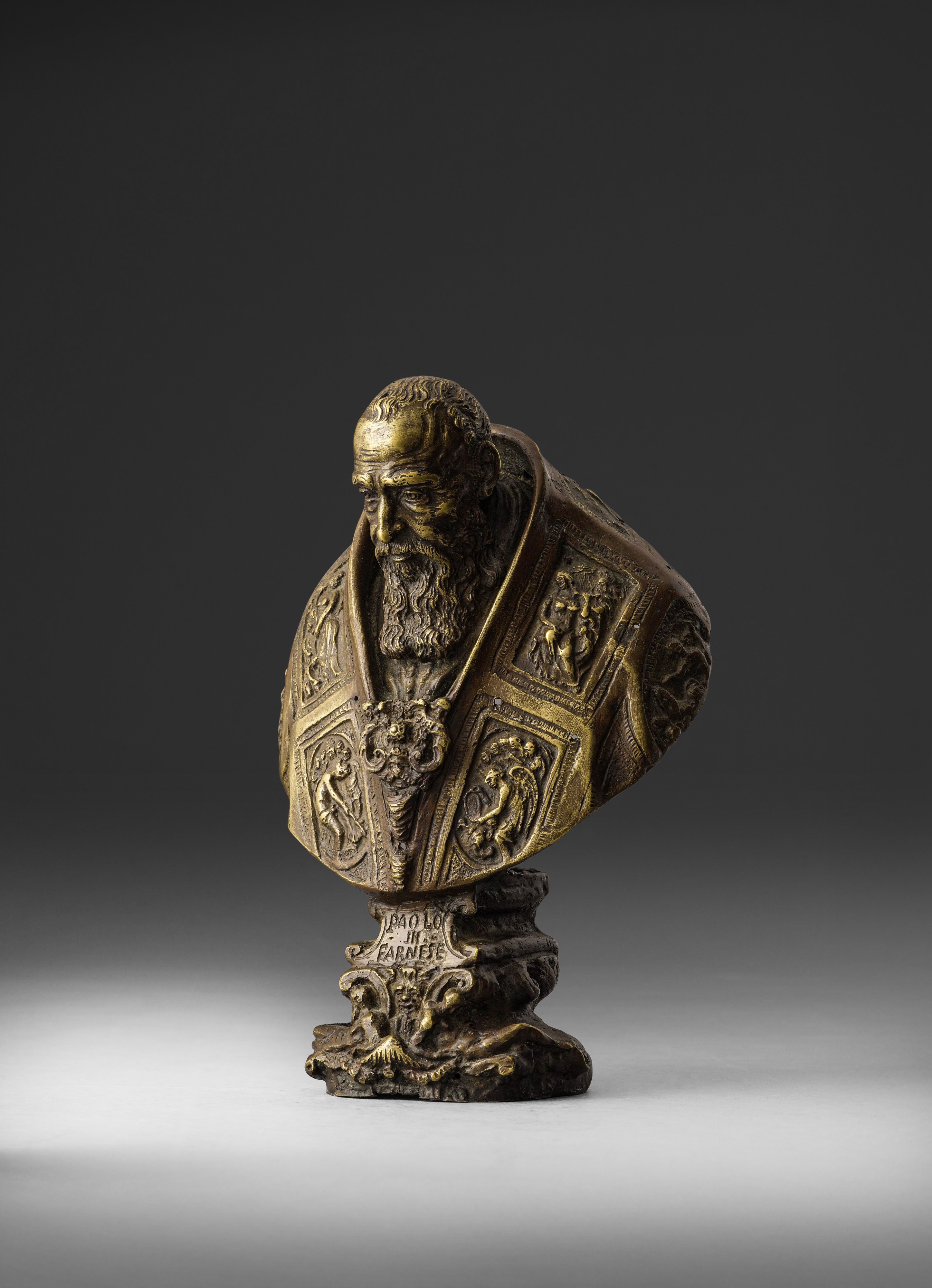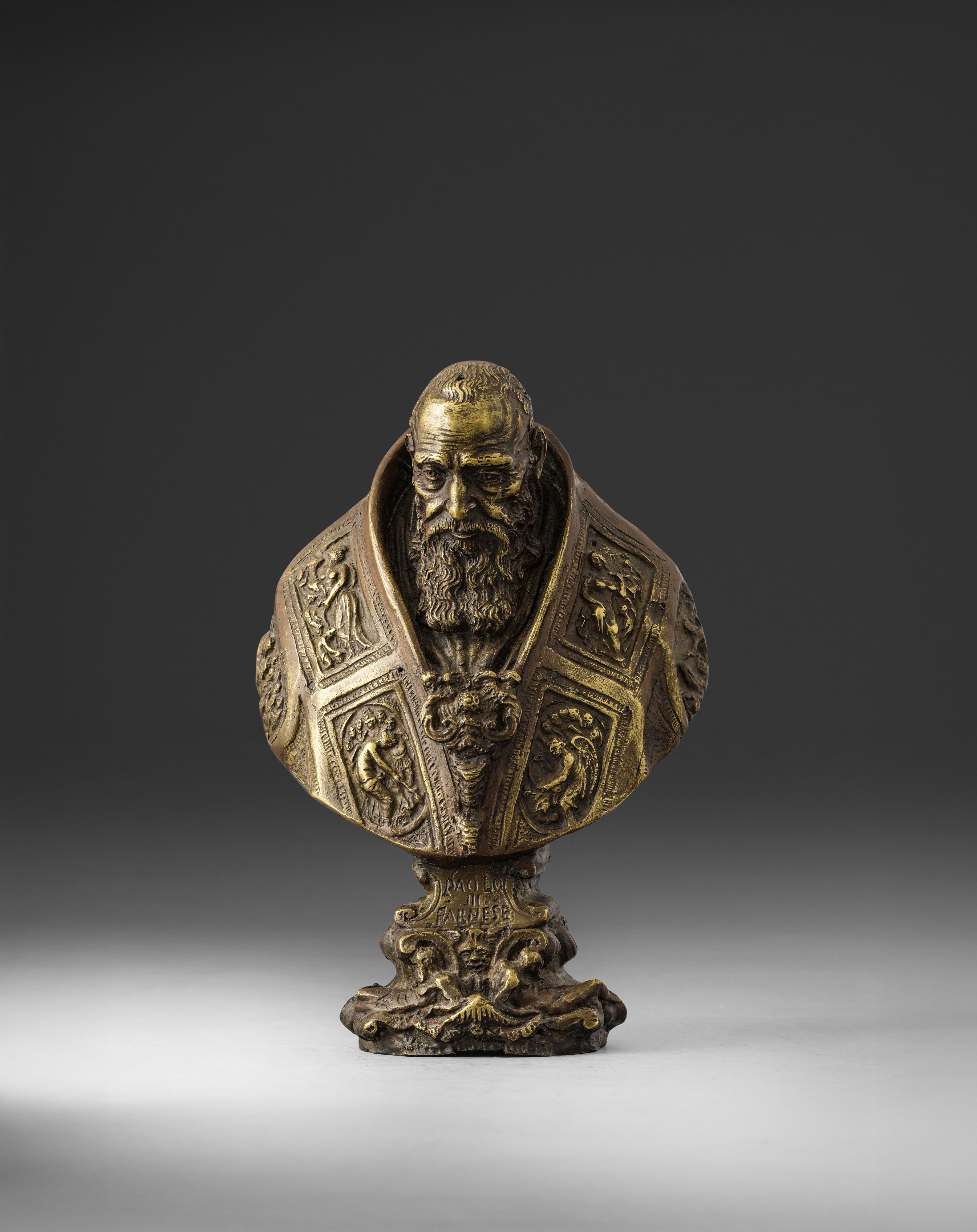 Il busto si ispira all'opera in marmo eseguita dallo scultore Guglielmo della Porta attorno al 1577 ora conservato presso il Museo di Capodimonte a Napoli