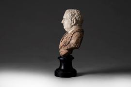 Marmo bianco e broccatello, base tornita in legno ebanizzato (non coeva)