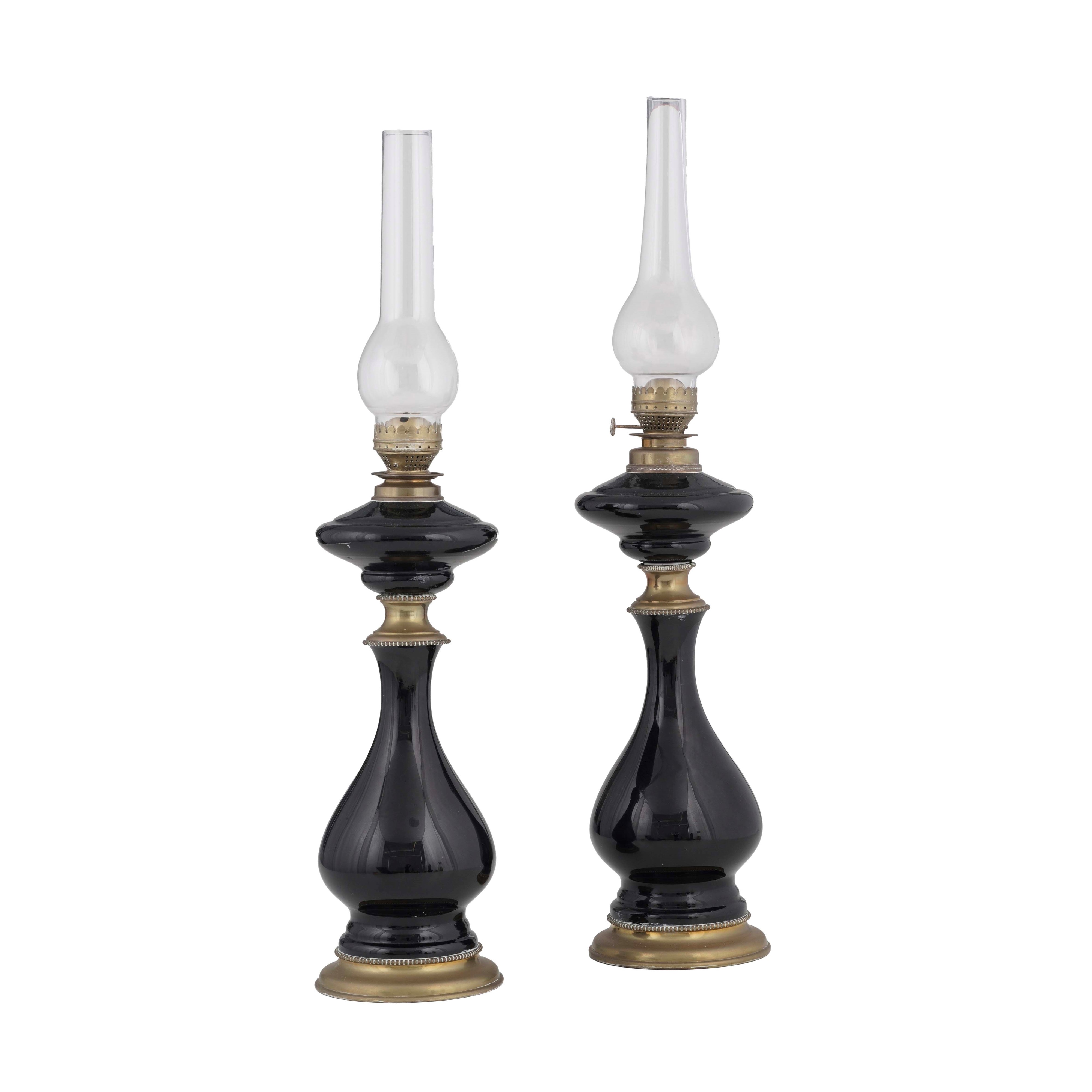 Coppia di lampade in porcellana e metallo dorato. XX secolo