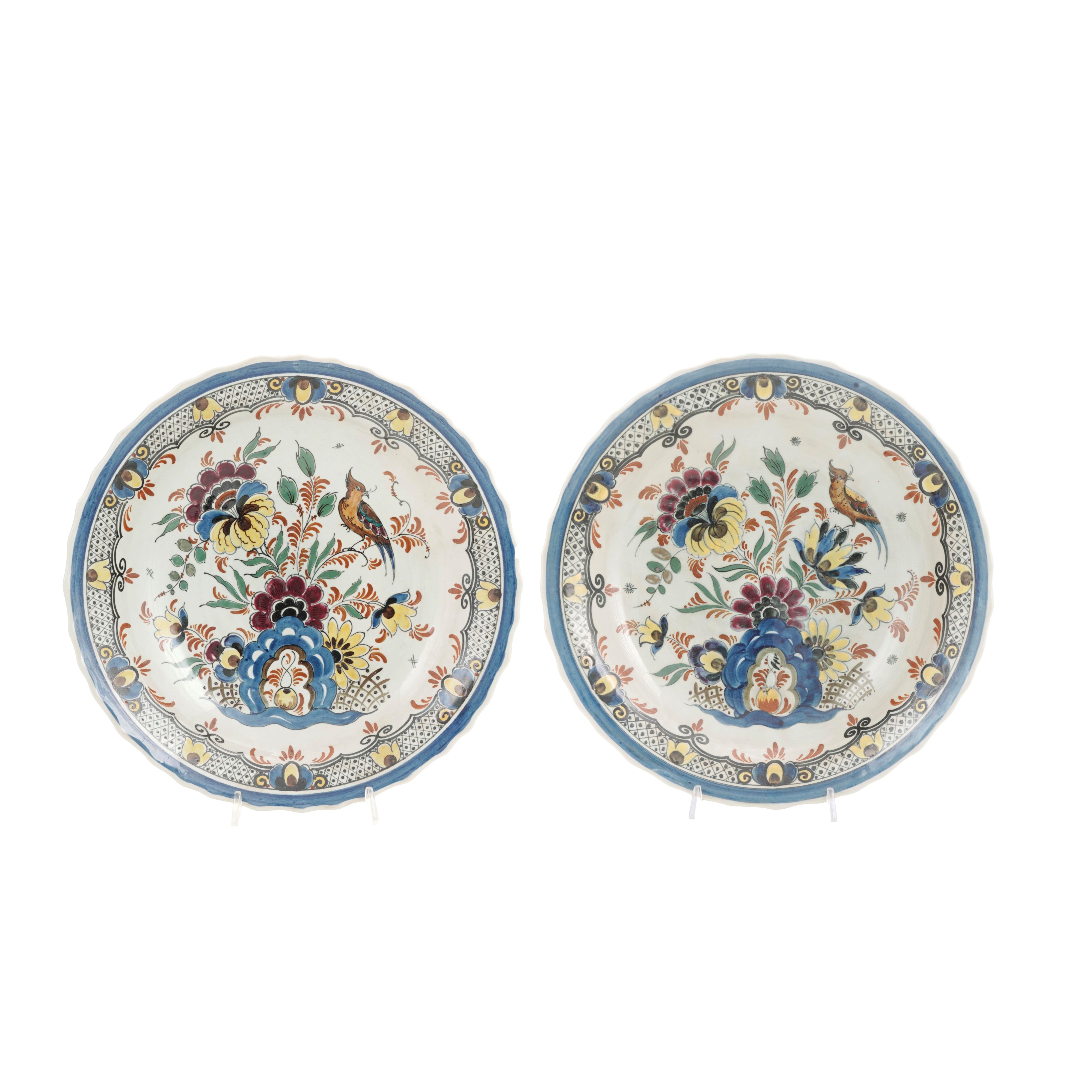 Coppia di piatti in porcellana con fiori e uccelli
