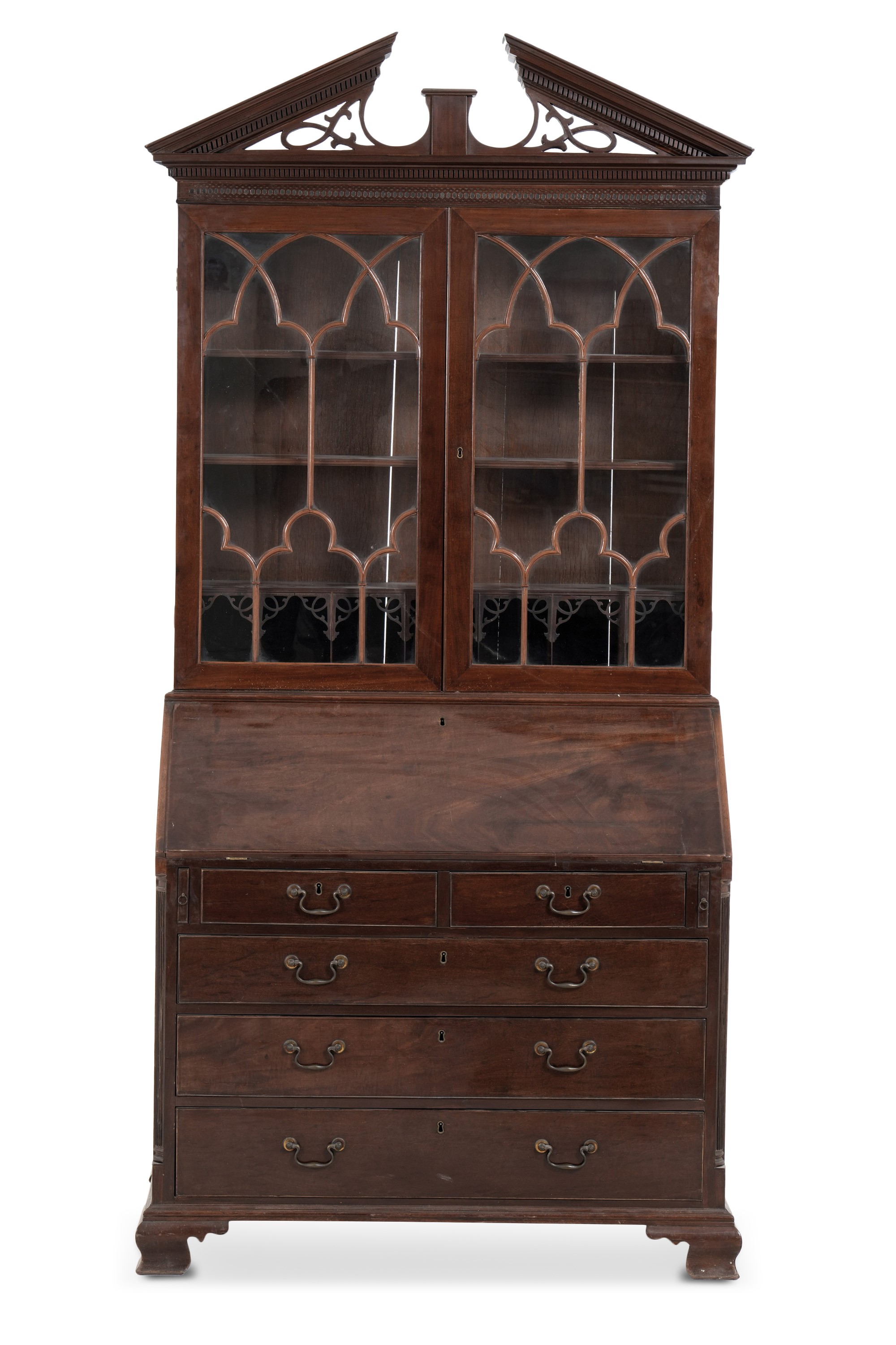 Parte inferiore a tre cassetti e anta ribaltabile, alzata a due ante a vetri