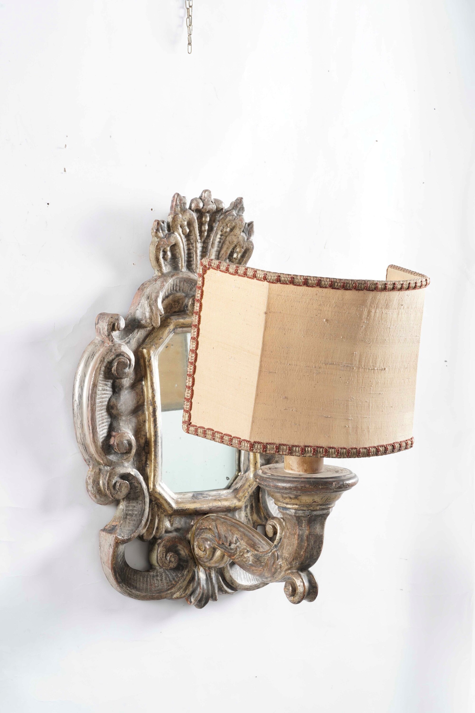 Ventolina con applique in legno dorato, intagliato, braccetti sagomati. Stile'700, XIX secolo