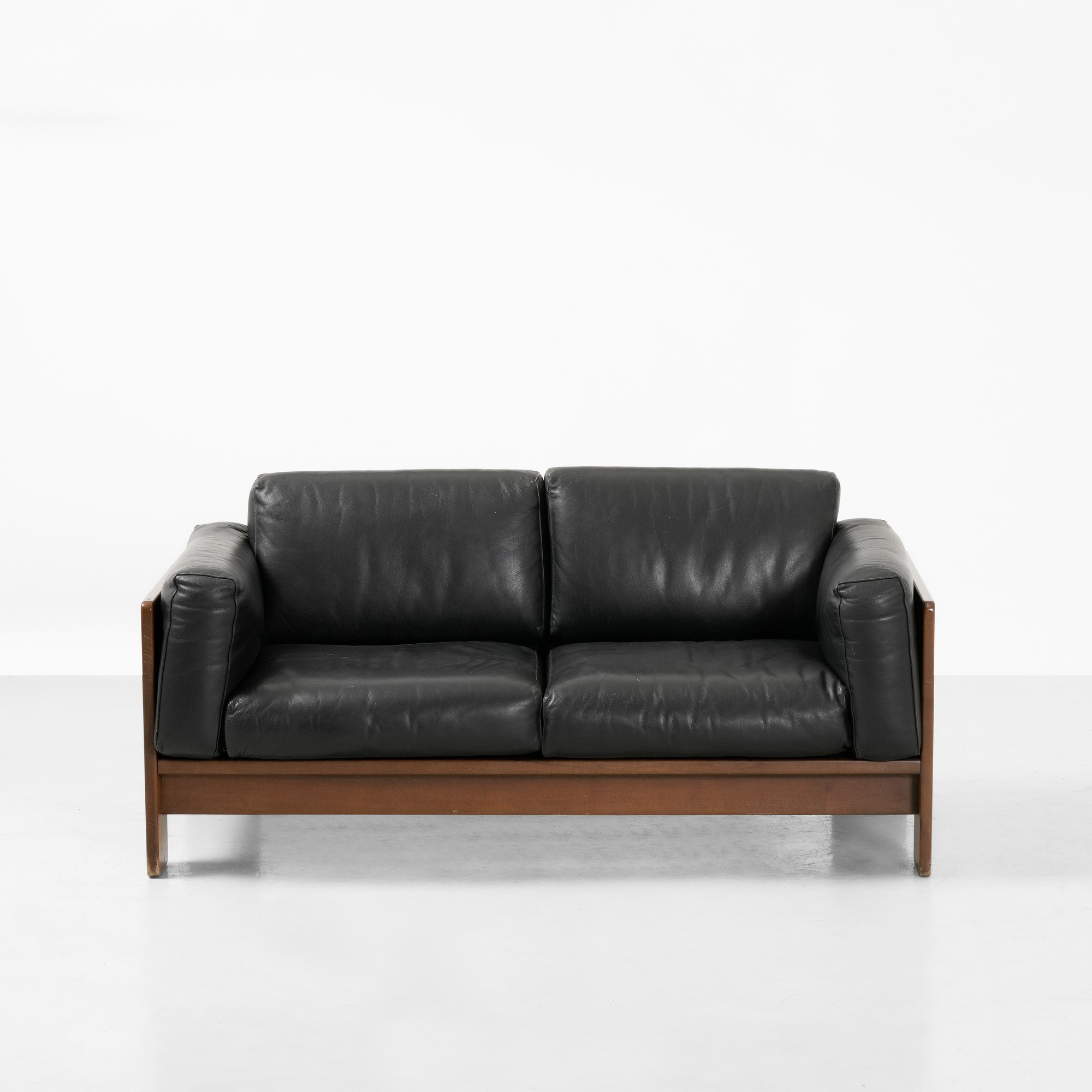 Struttura in legno e rivestimento in cuoio.