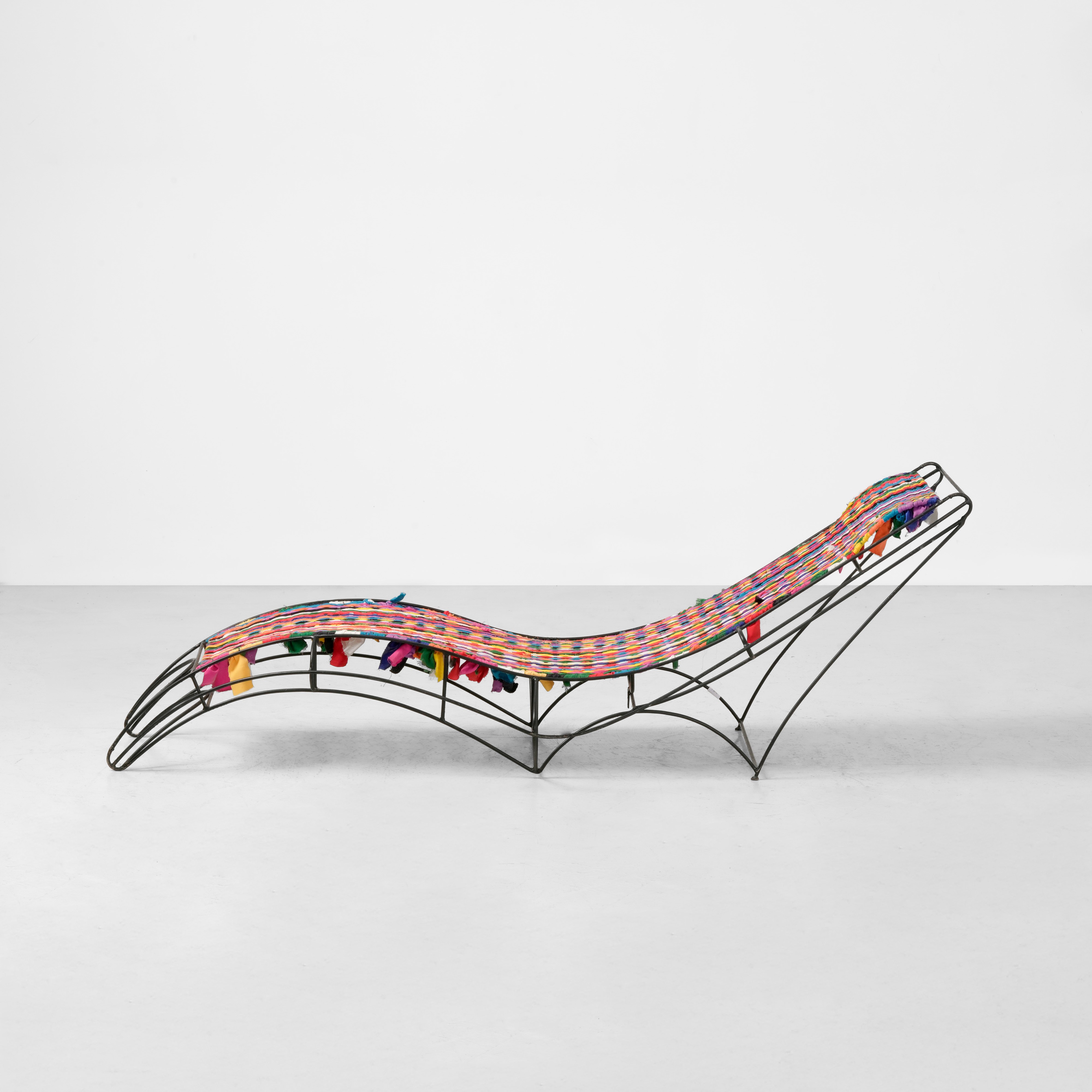 Struttura in metallo tubolare laccato e rivestimenti in stoffa.