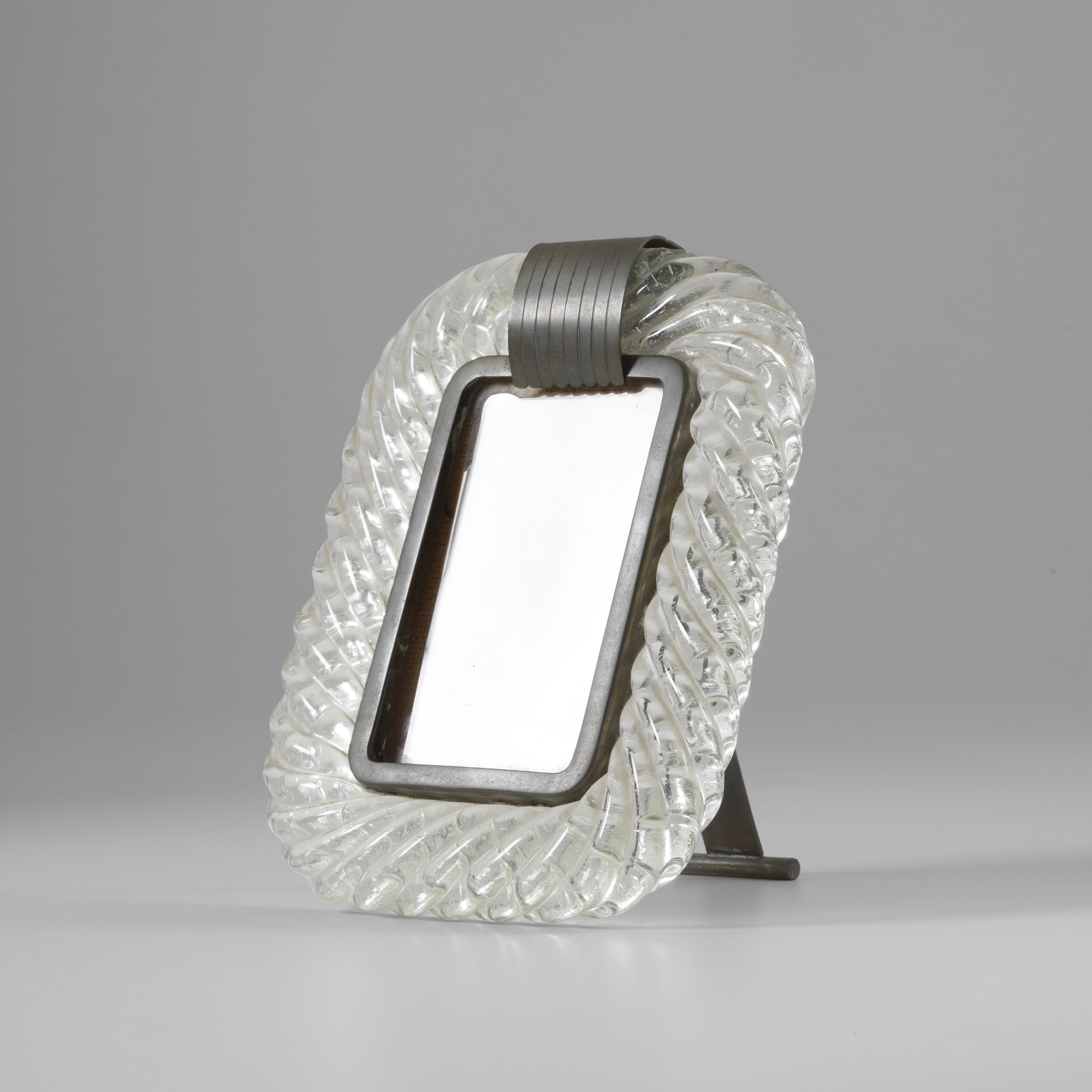 Montatura in ottone con cornice in vetro di Murano a torciglione.
