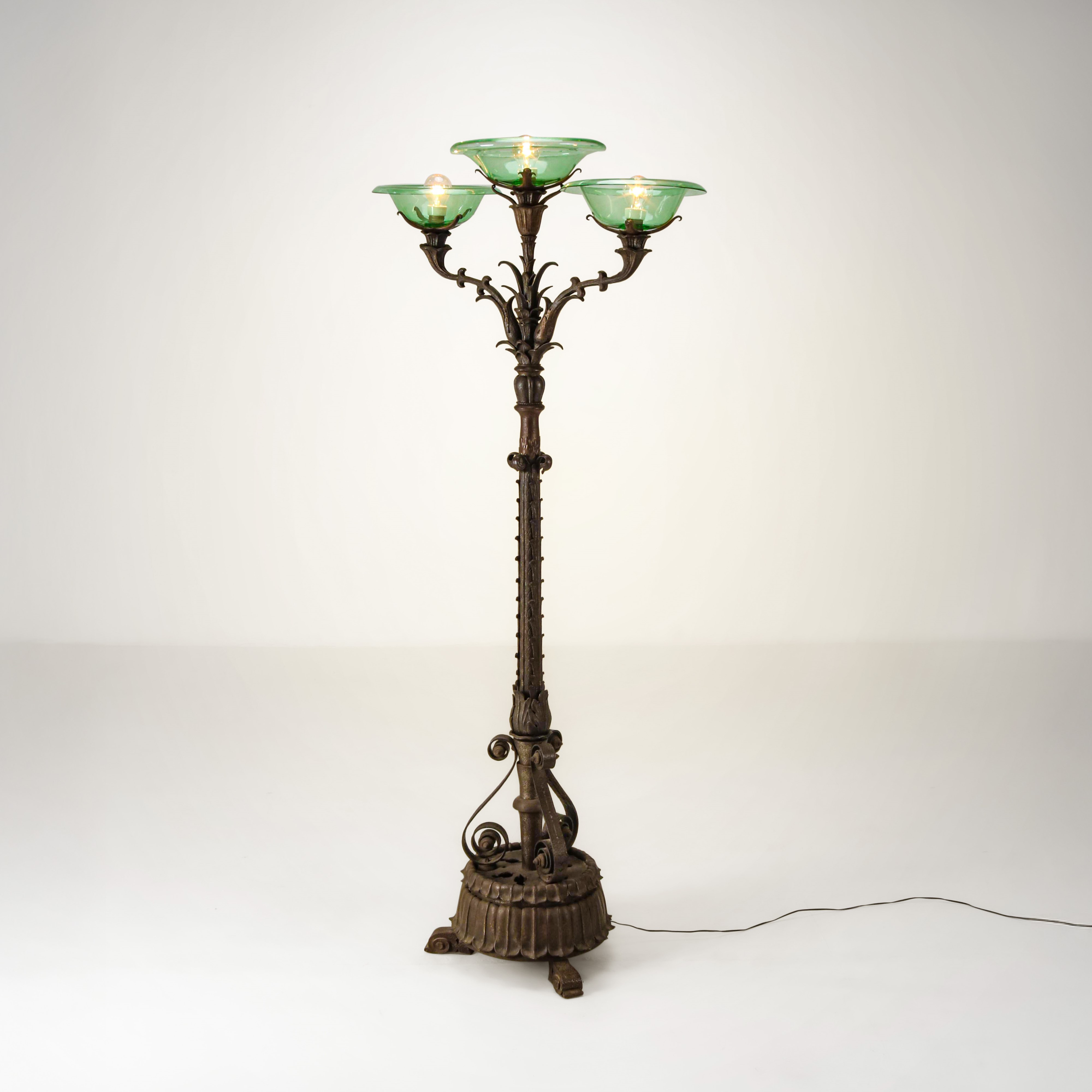 Struttura in ferro battuto e patinato.