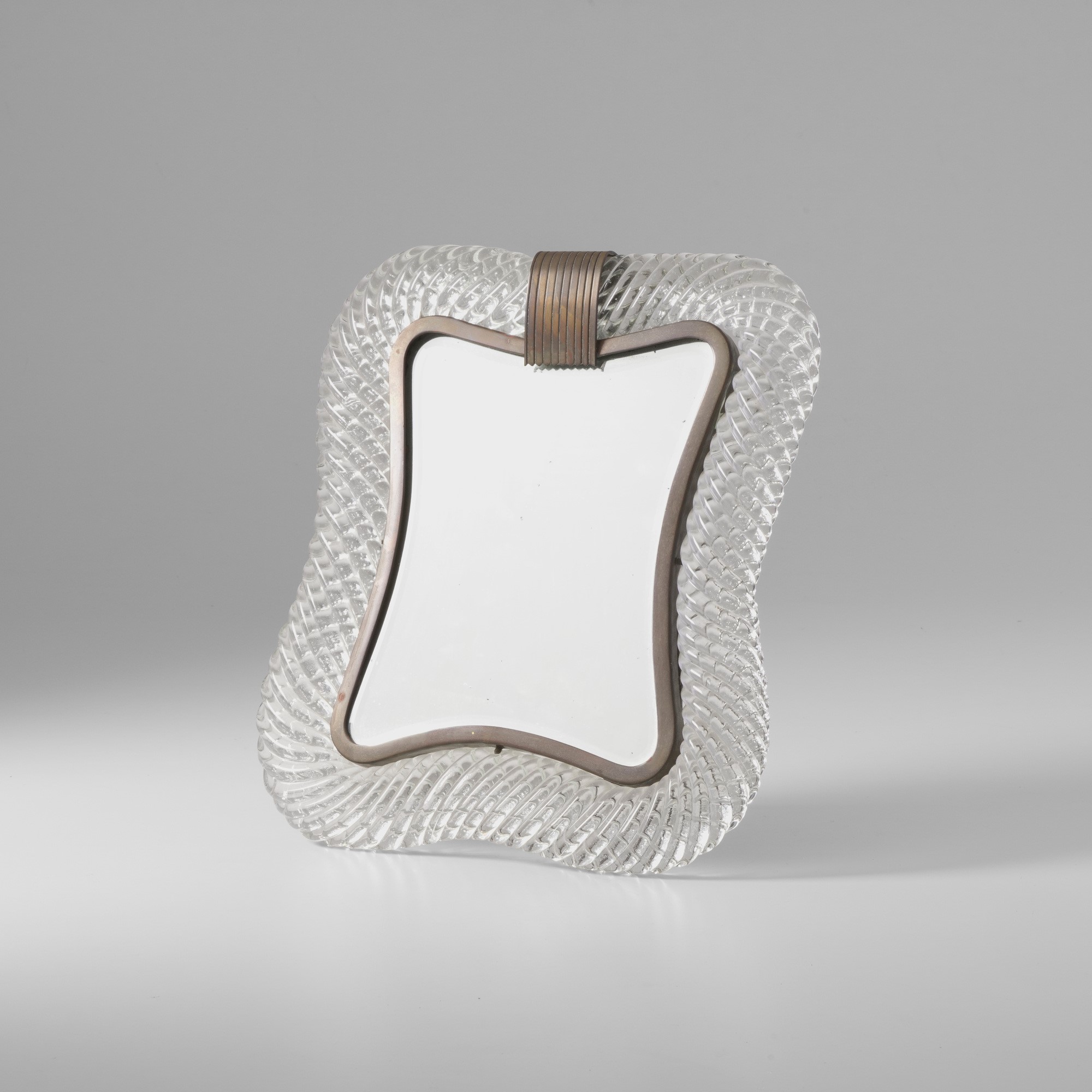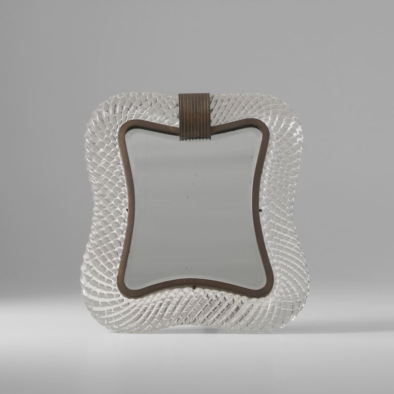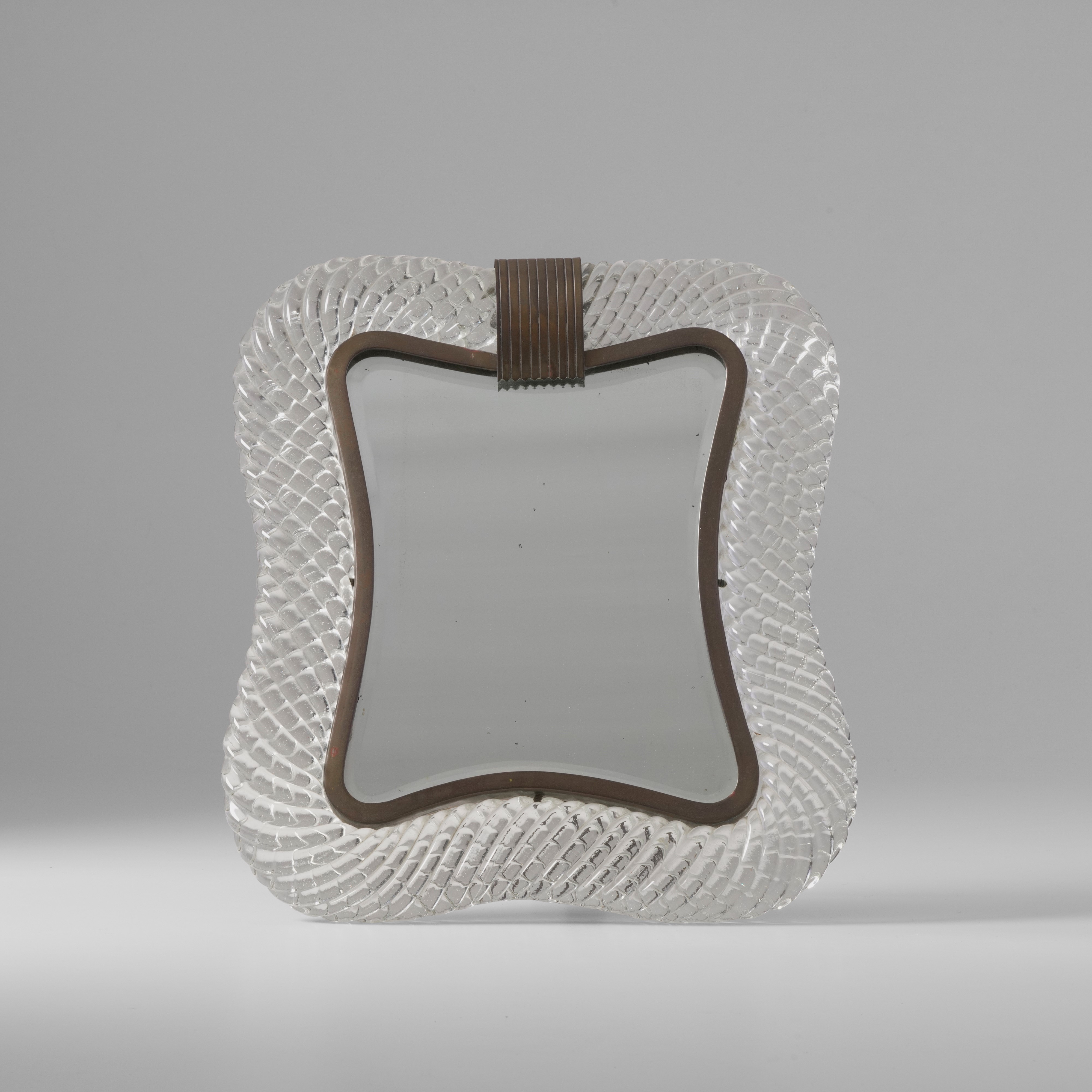 Montatura in ottone con cornice in vetro di Murano a torciglione.
