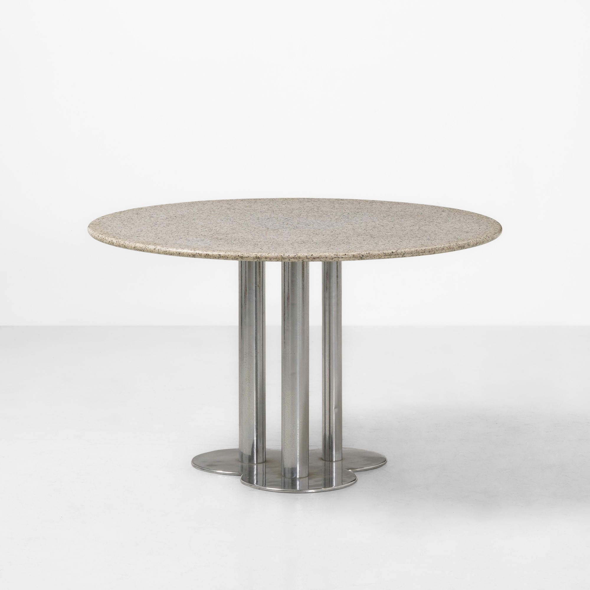 Struttura e sostegni in metallo cromato, piano in granito.