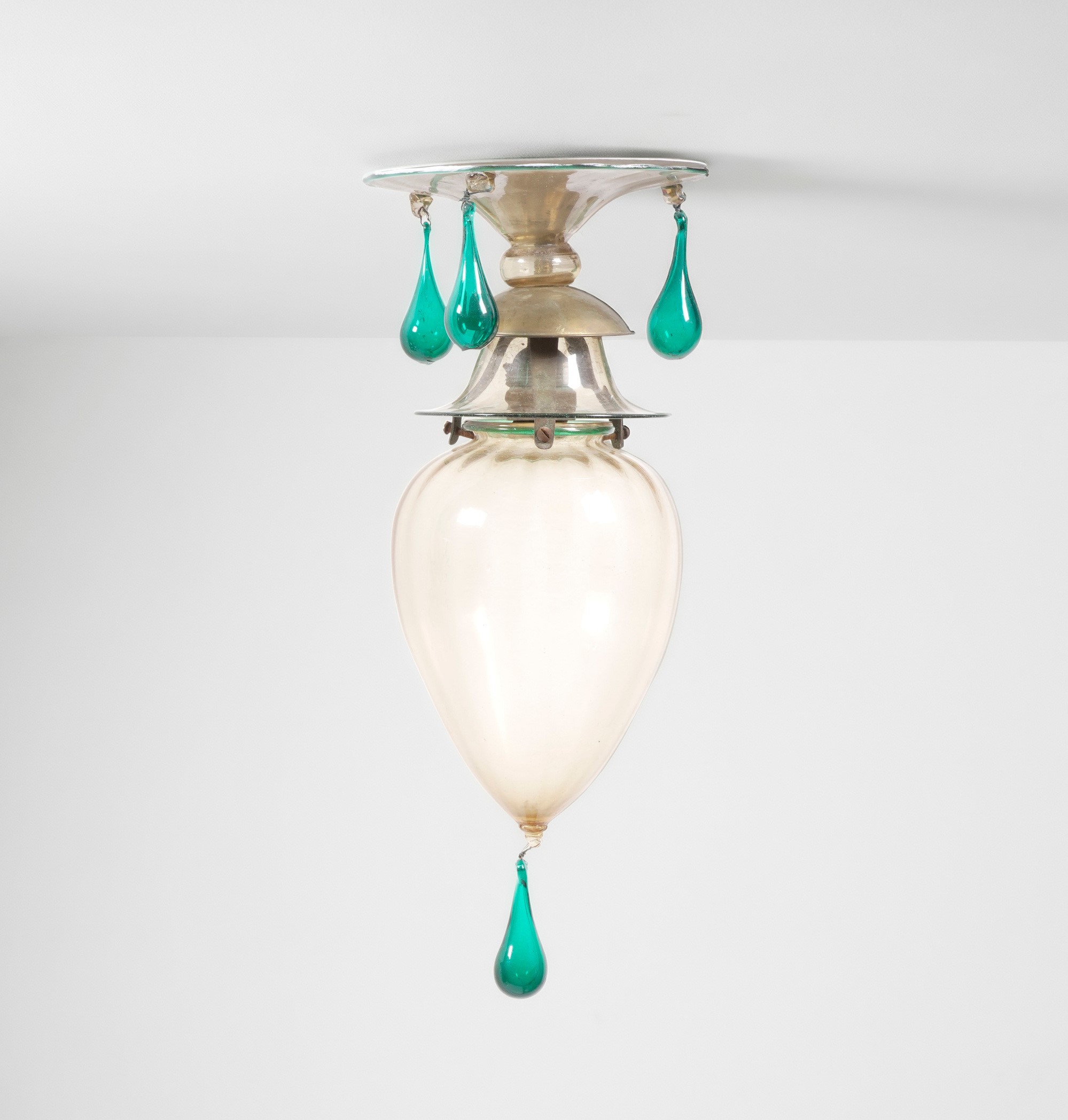 Struttura in metallo e vetro di Murano colorato.