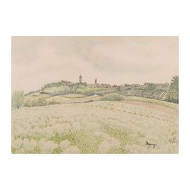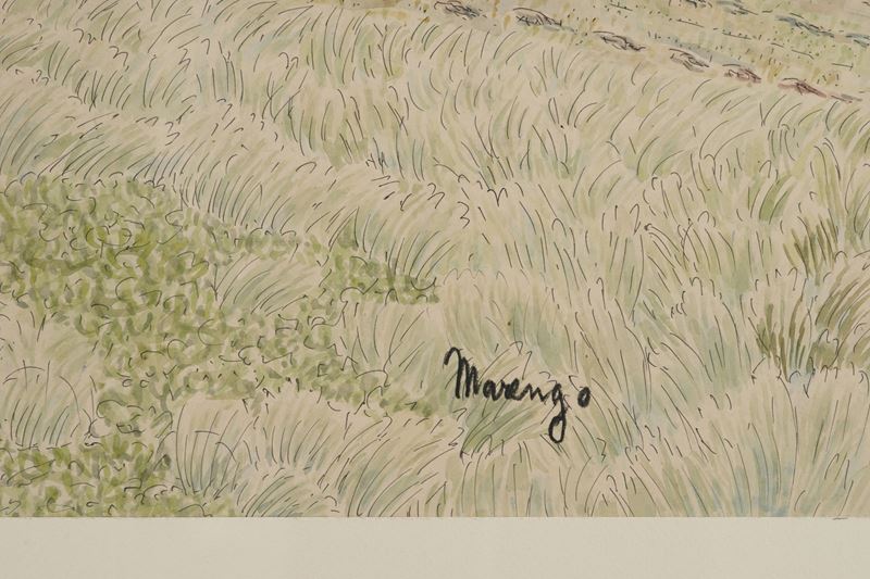 Acquerello raffigurante paesaggio collinare a firmato “Marengo”