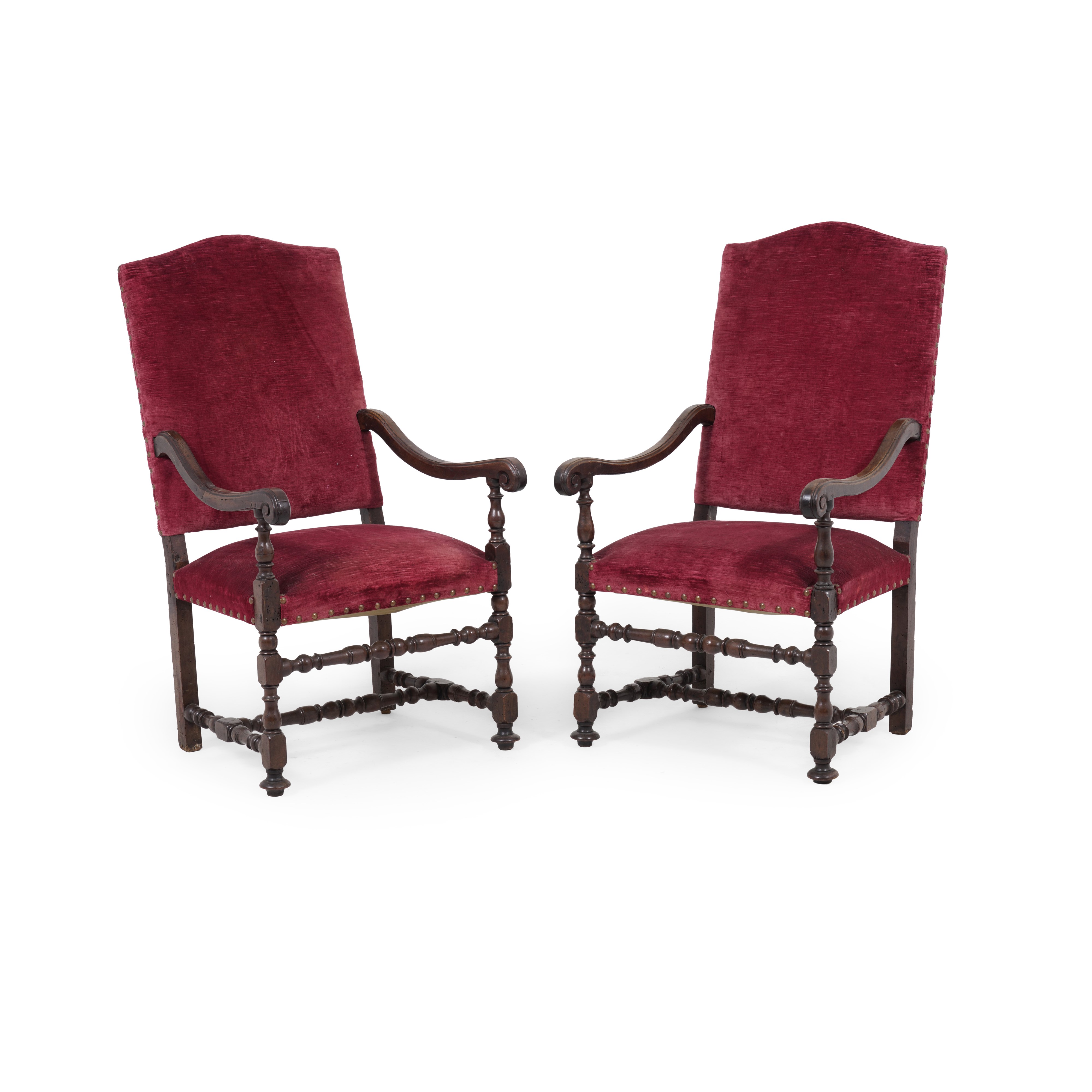 Coppia di poltrone in noce intagliato. XVII secolo