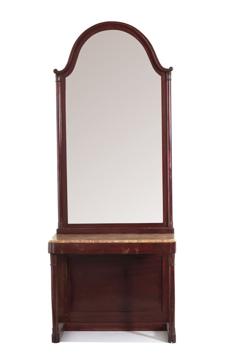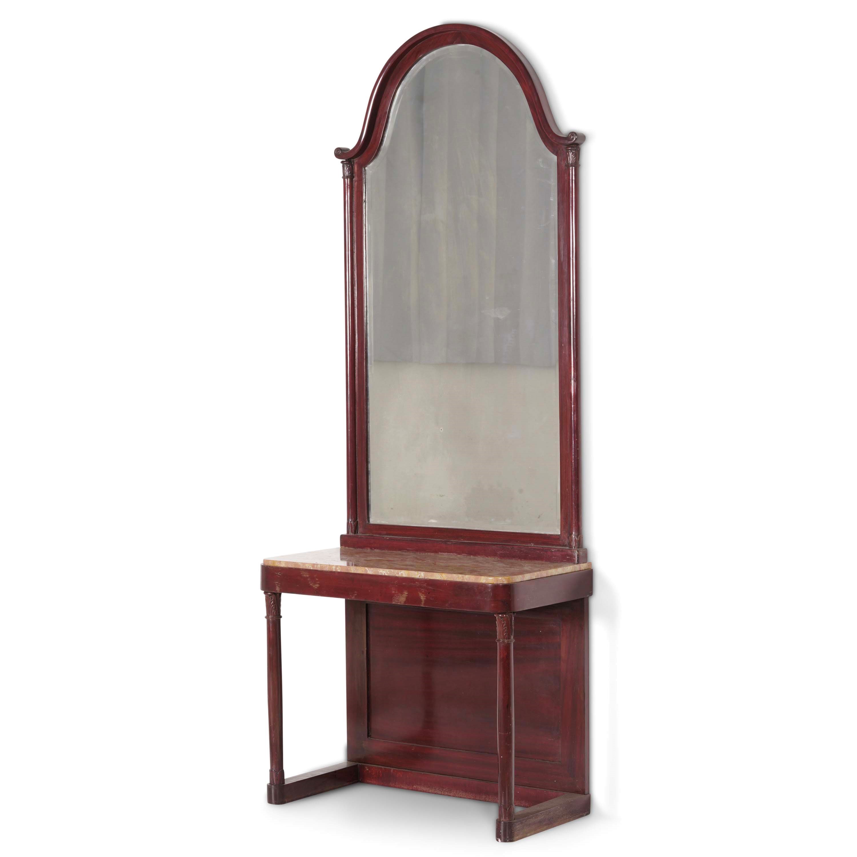 Consolle con specchio in faggio curvato. Piano in marmo.