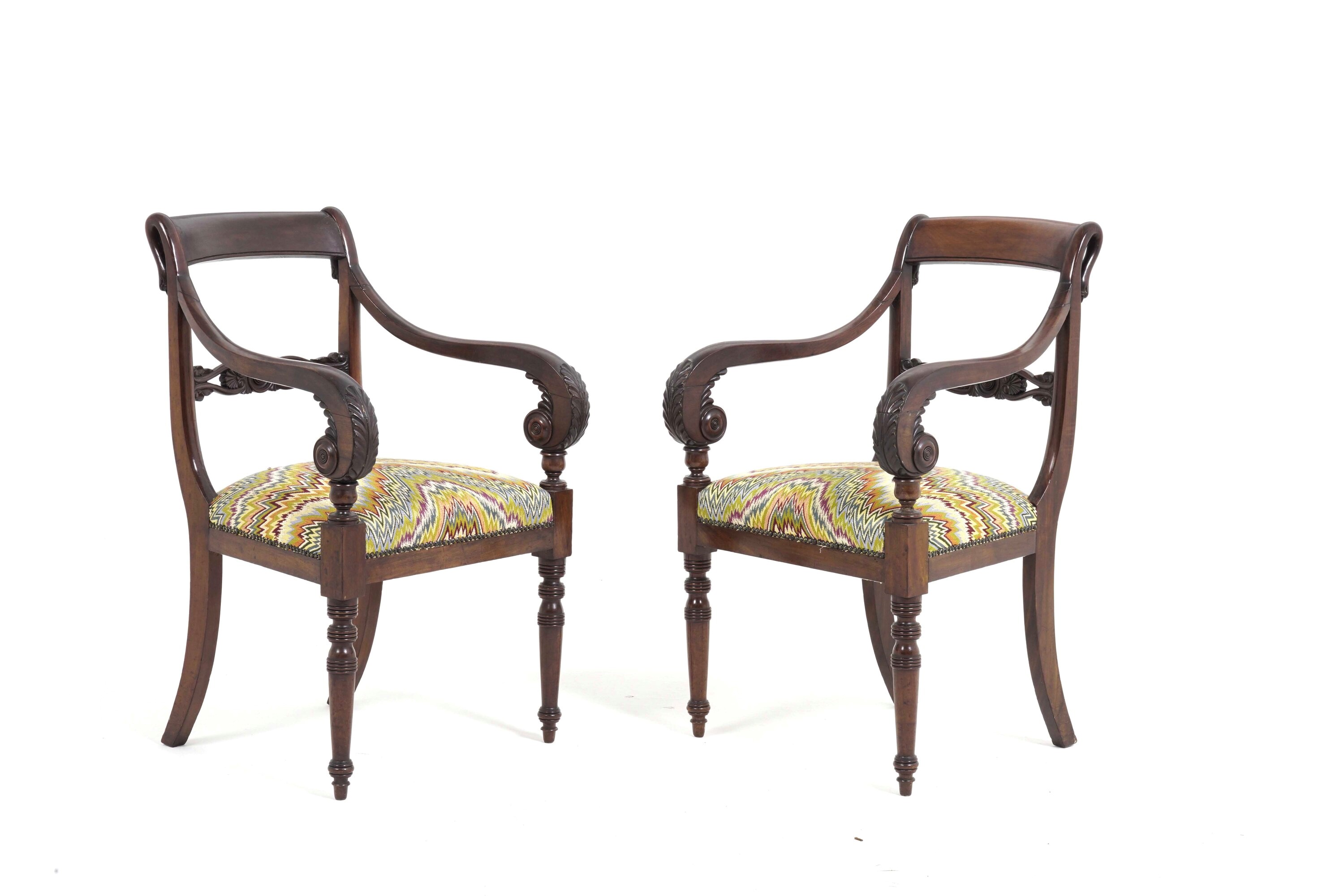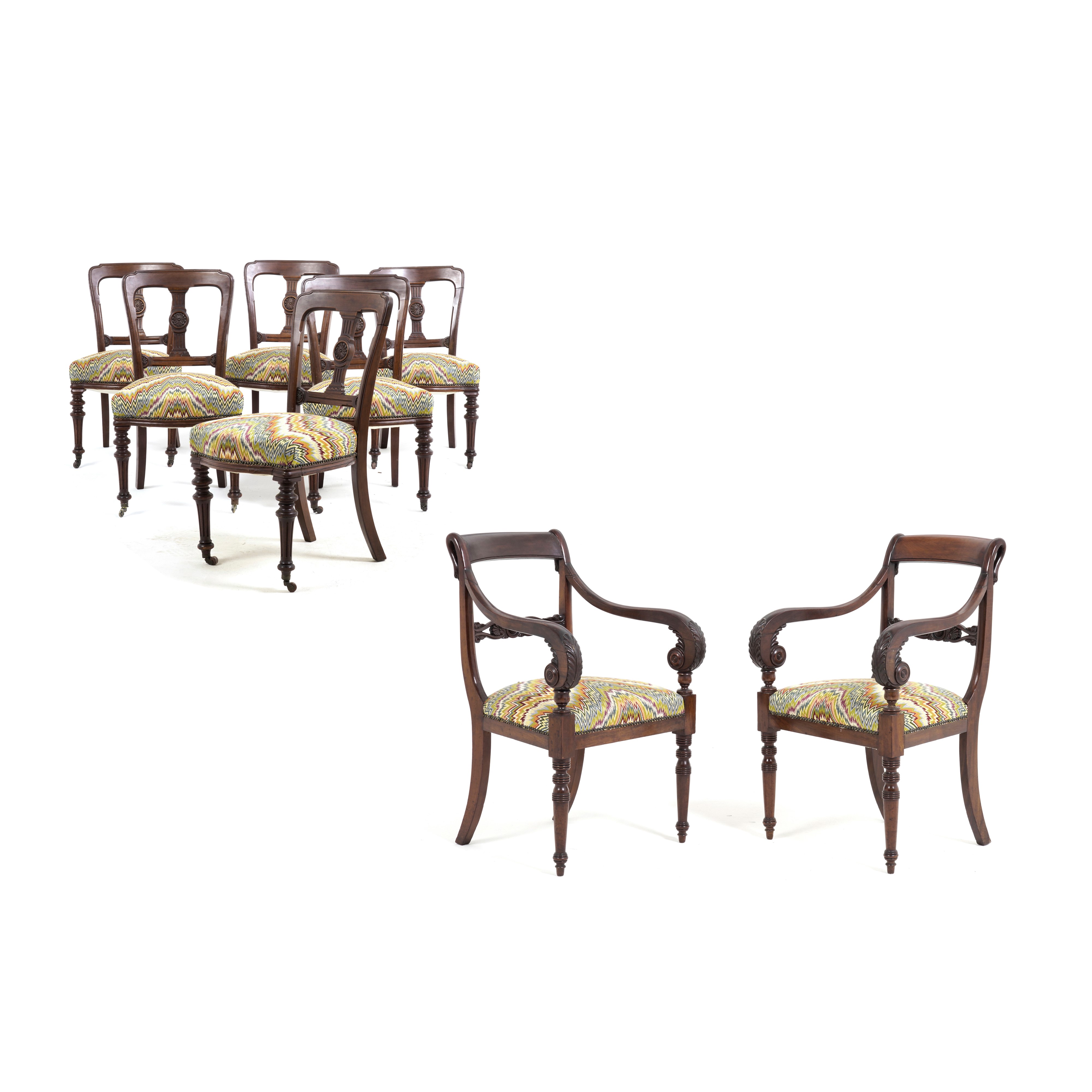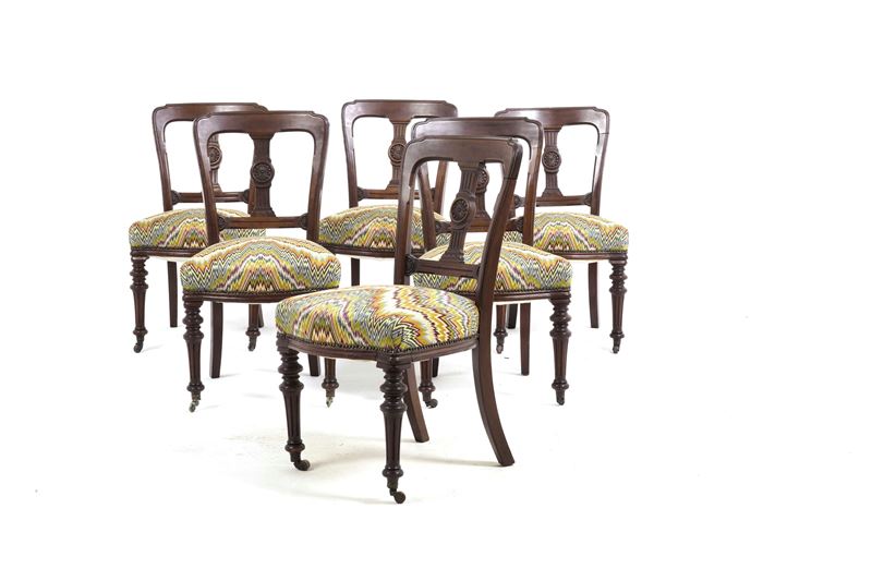 Sei sedie e due poltrone tipo Peter in mogano
