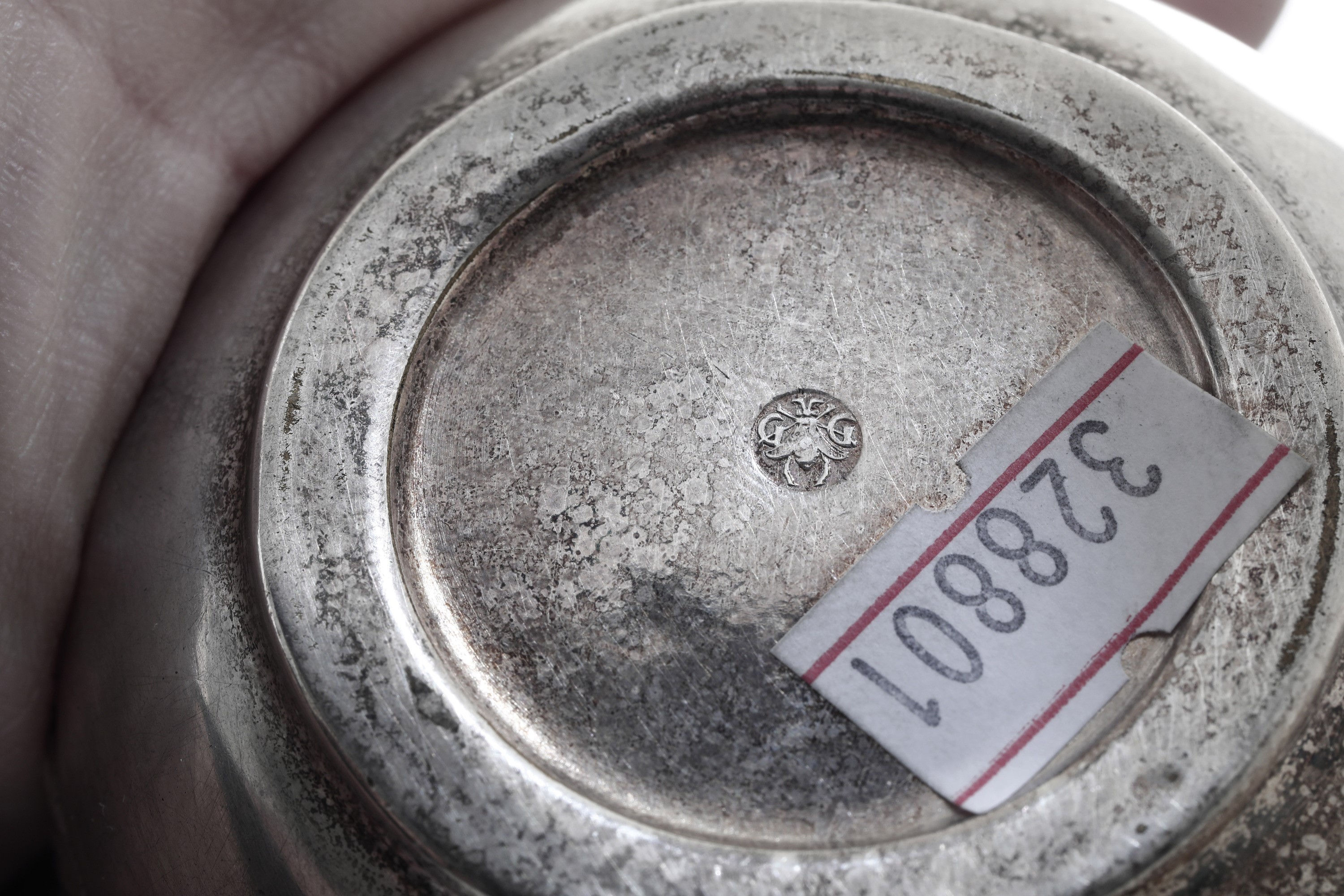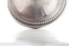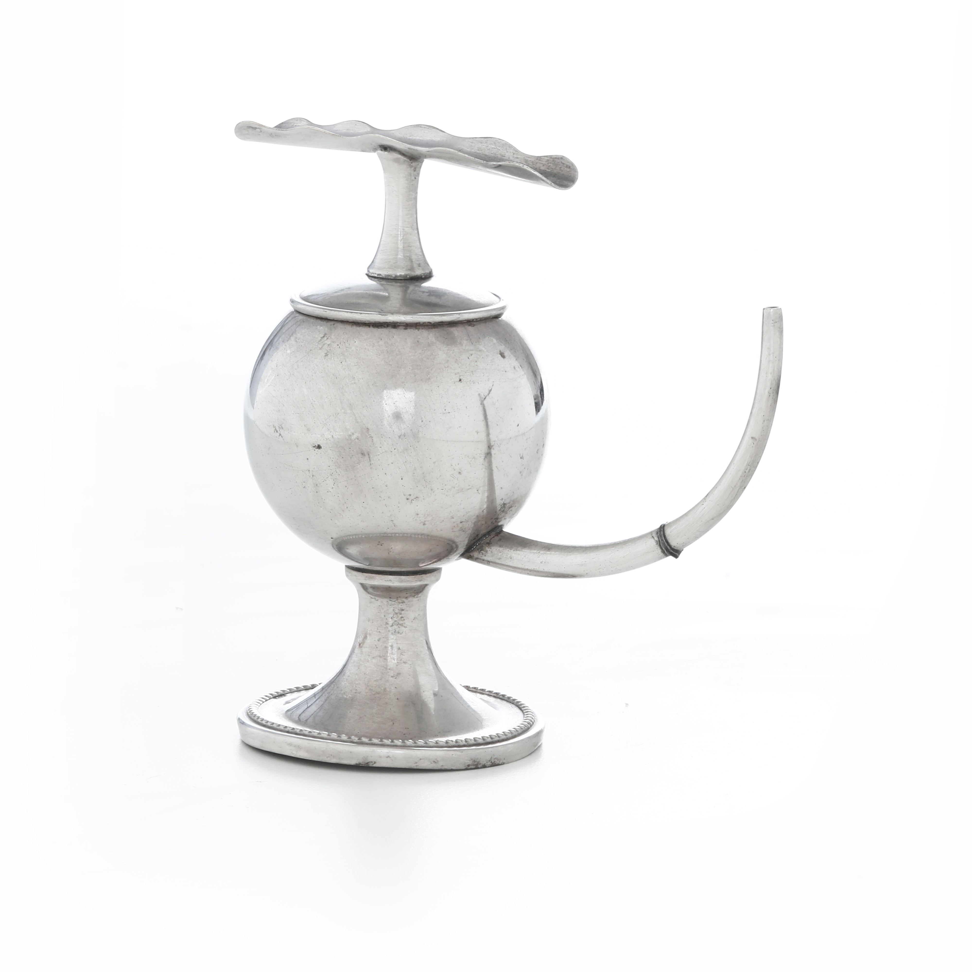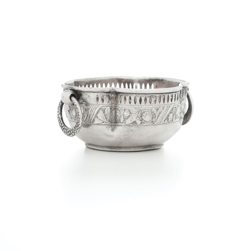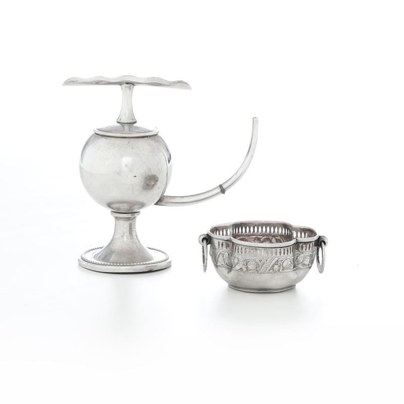Una stoppiniera e una ciotolina biansata in metallo argentato. XX secolo