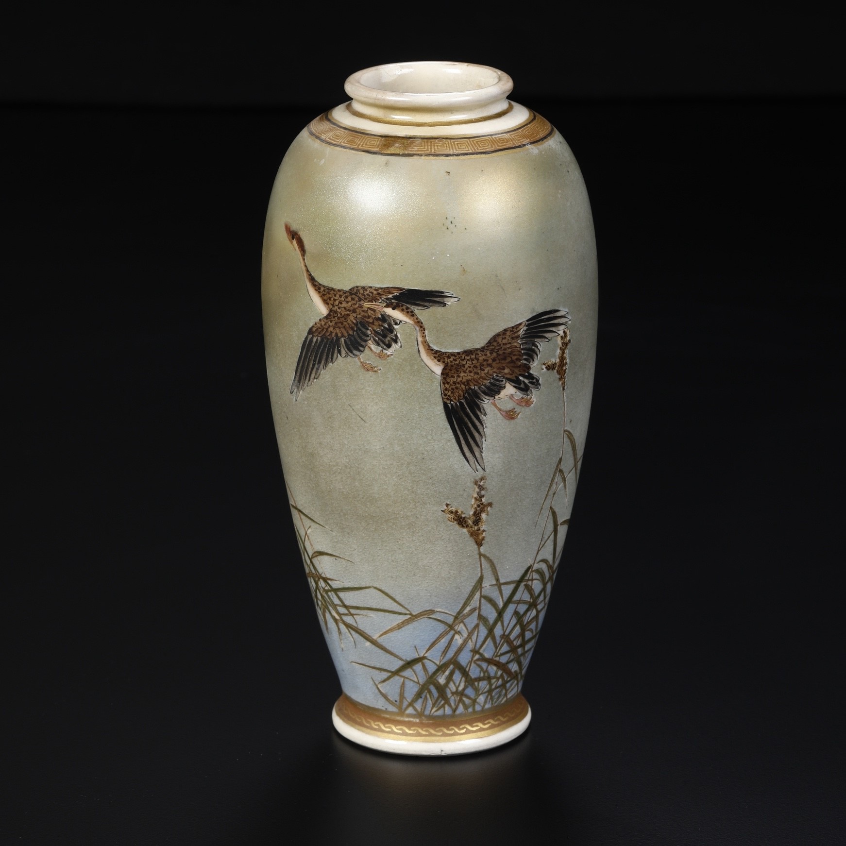 Vaso in porcellana Satsuma raffigurante coppia di Aironi in volo, Giappone, XIX secolo