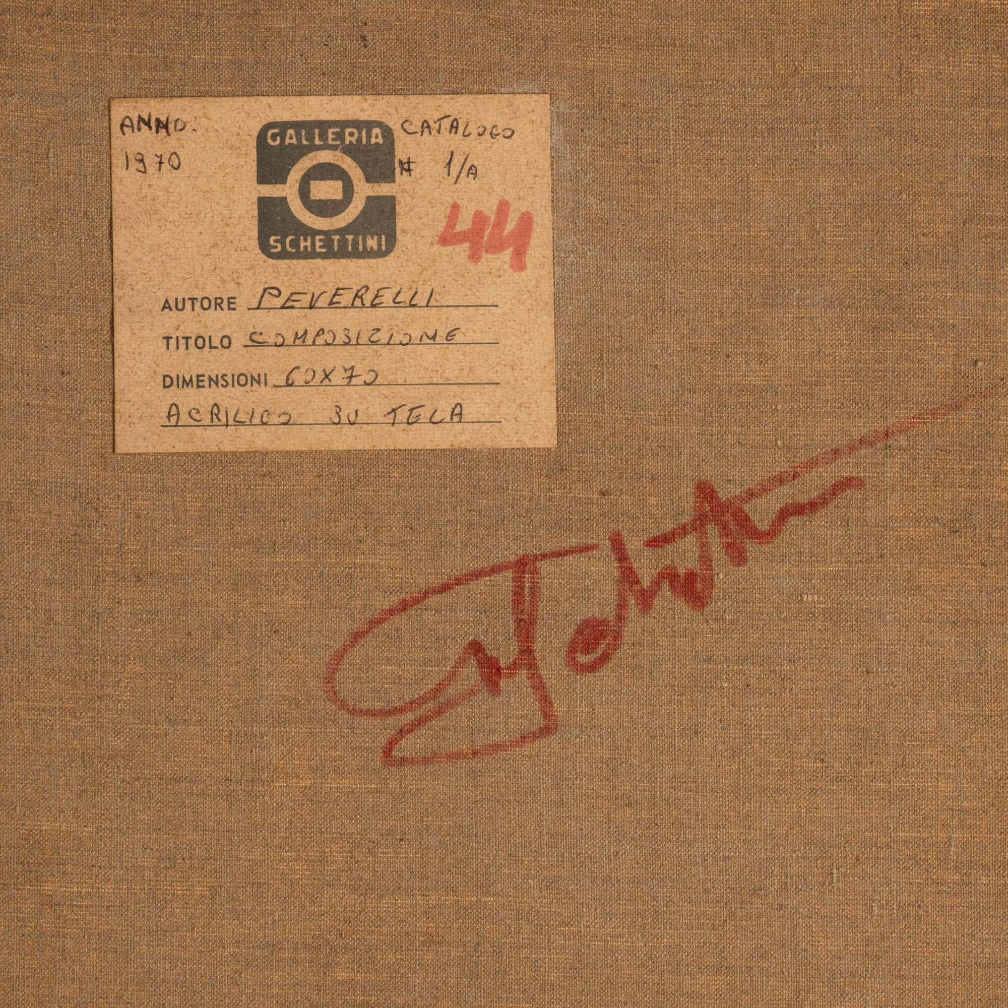 etichetta al retro della Galleria Schettini, Milano