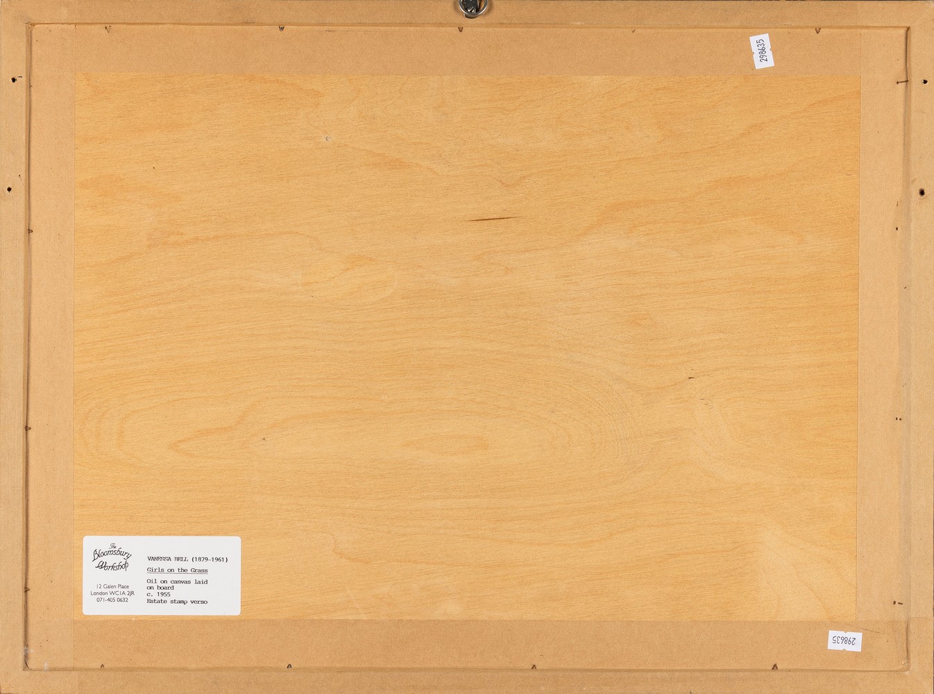 Etichetta al retro della The Bloomsbury Workshop, Londra