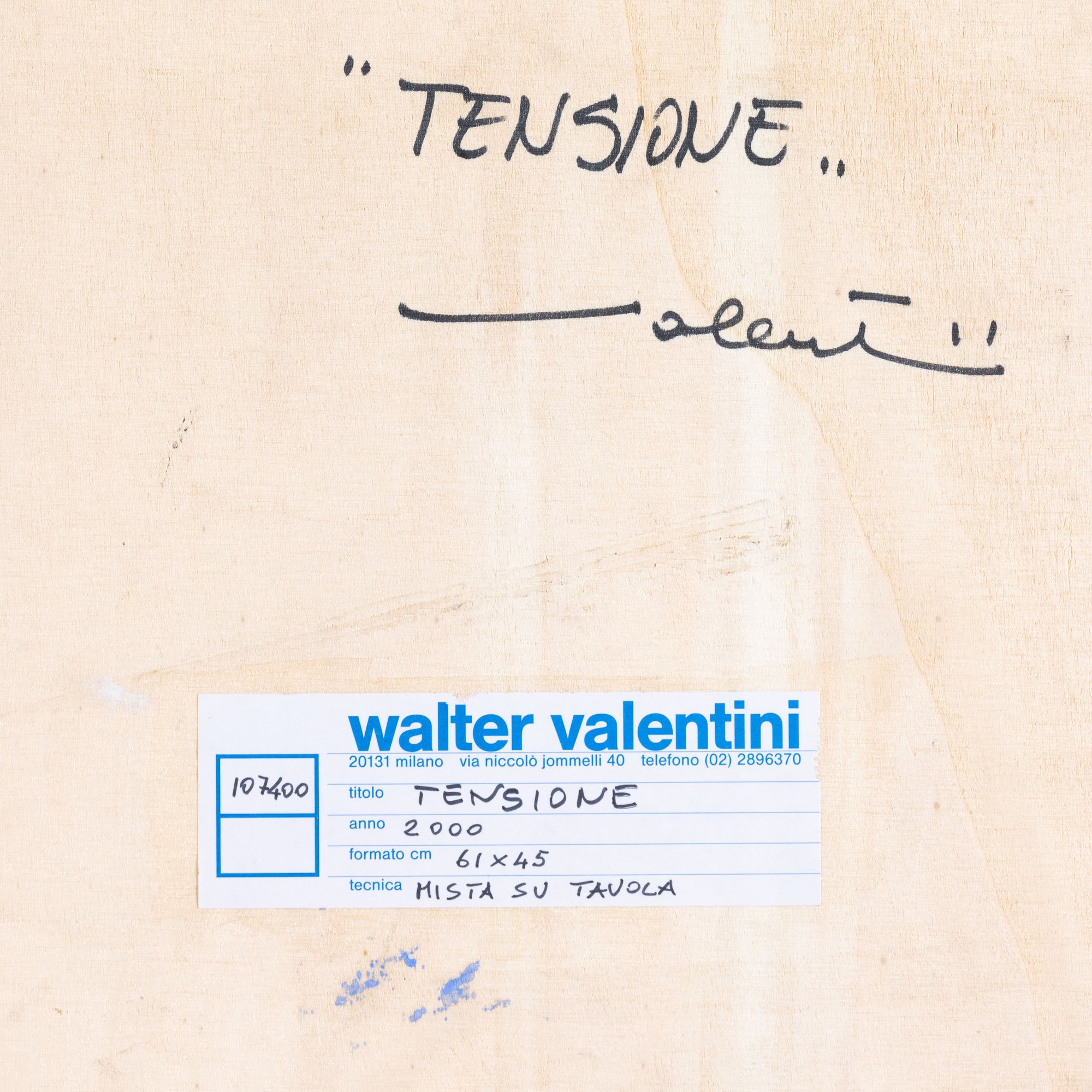 etichetta al retro dell'artista
