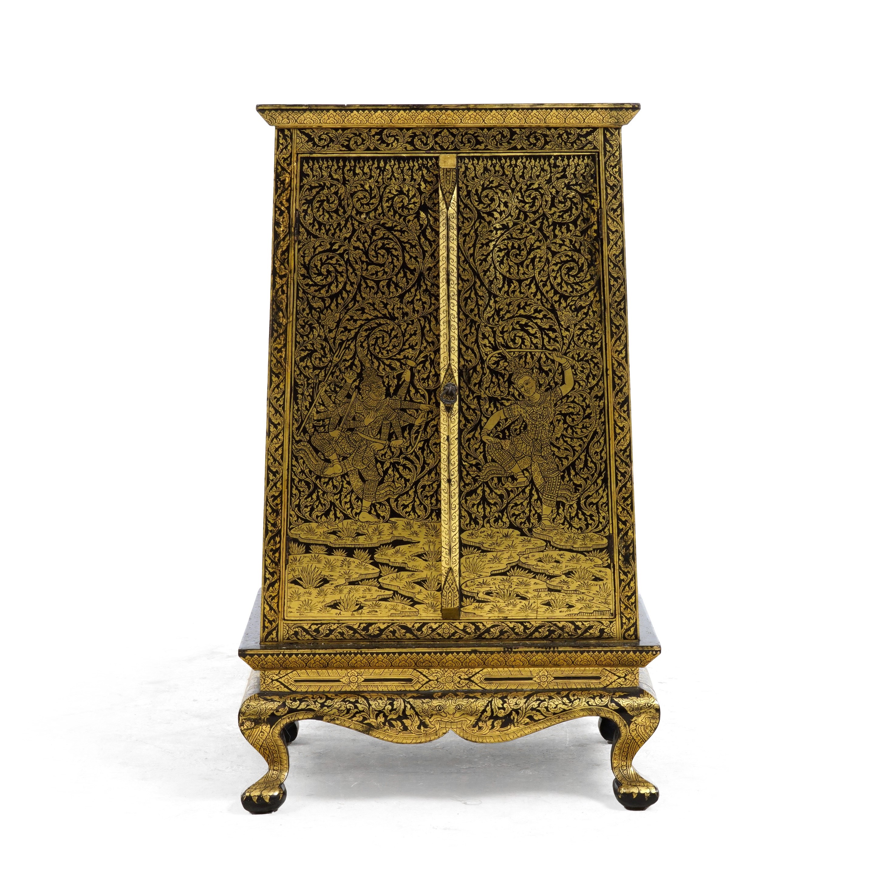 Credenza in stile orientale decorata a dorature su fondo nero
