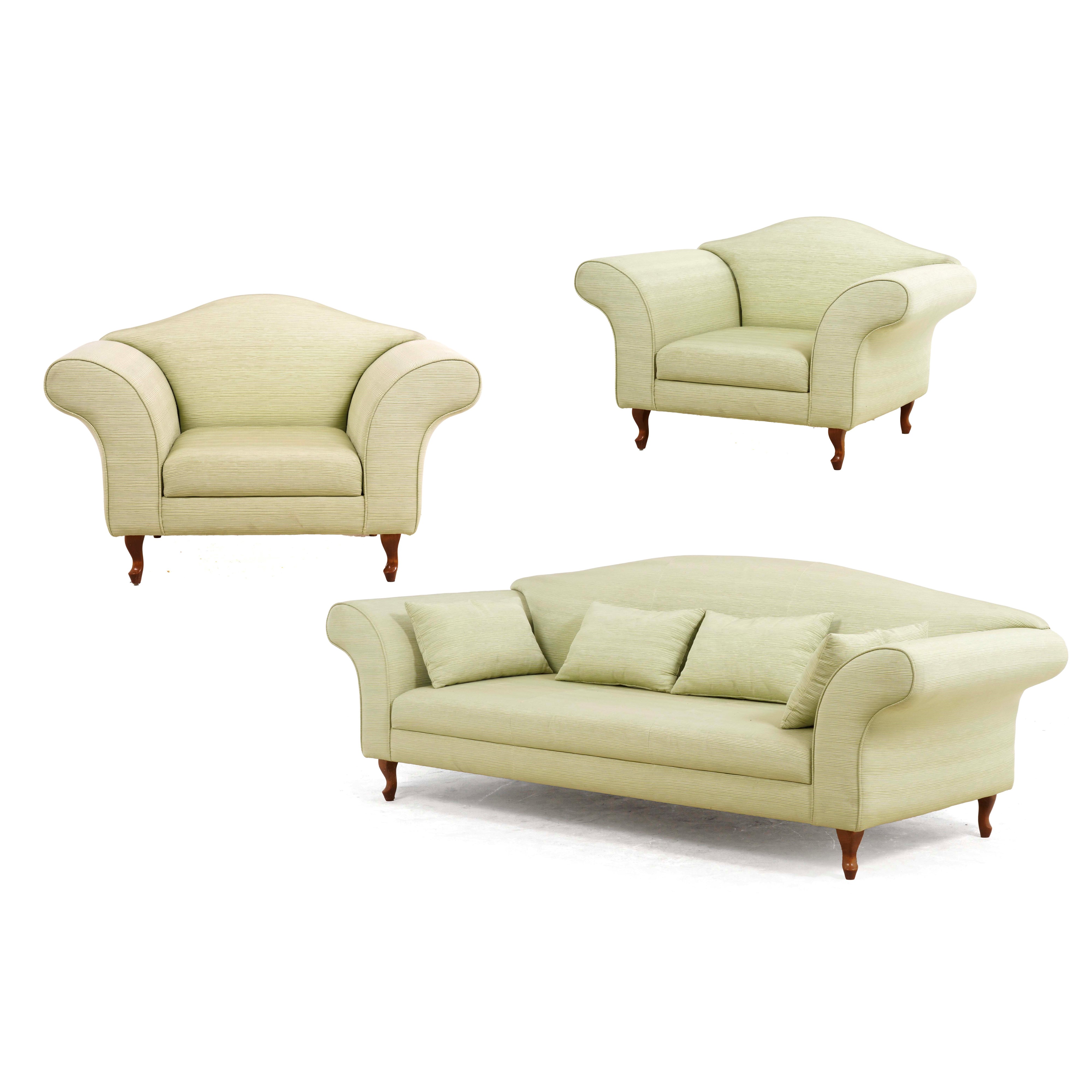 Divano e coppia di poltrone imbottite