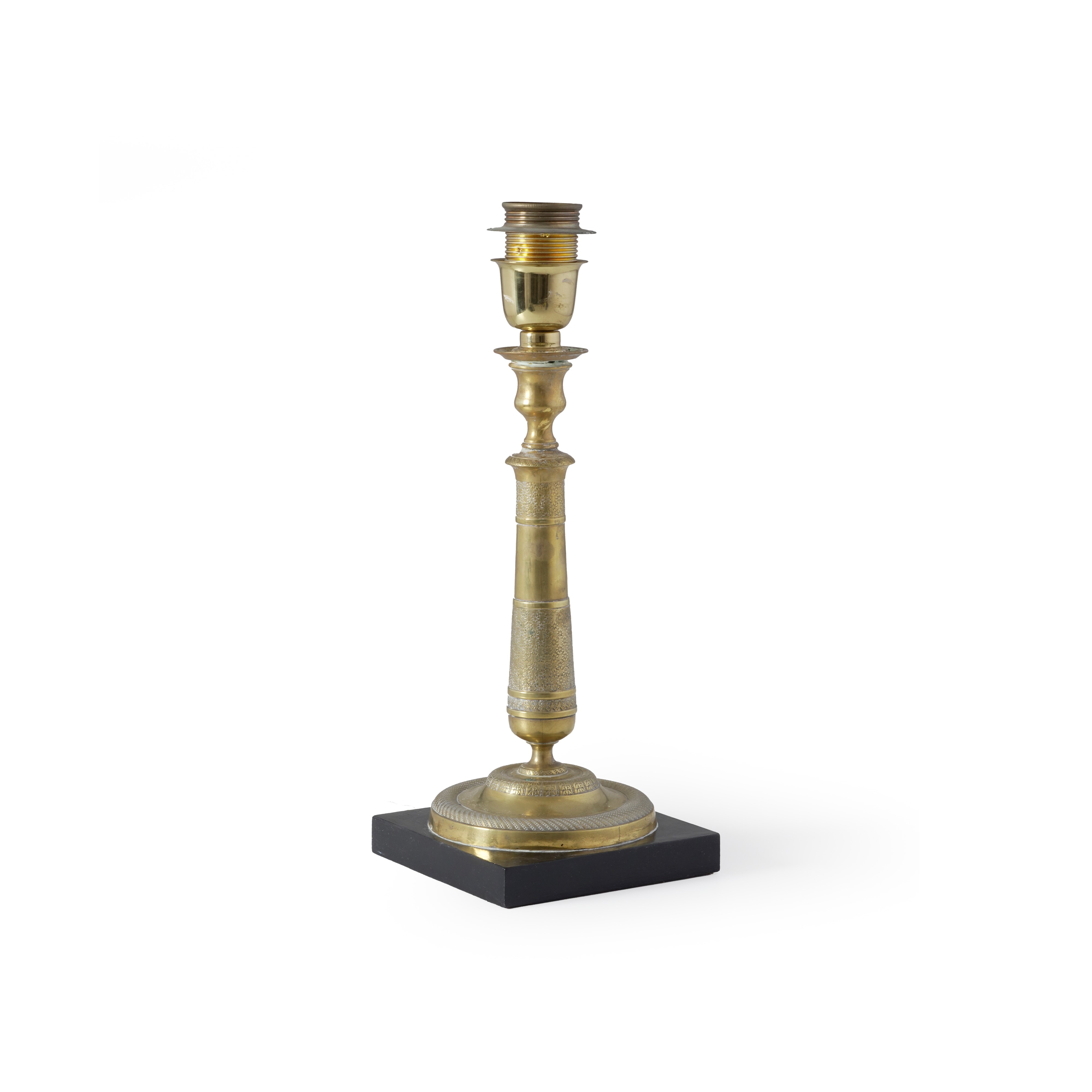 Lampada da tavolo in metallo su base in legno