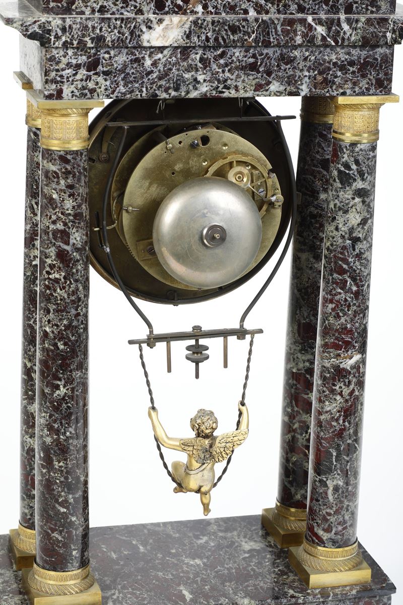 Pendola da tavolo a portico in marmo. Francia XIX secolo