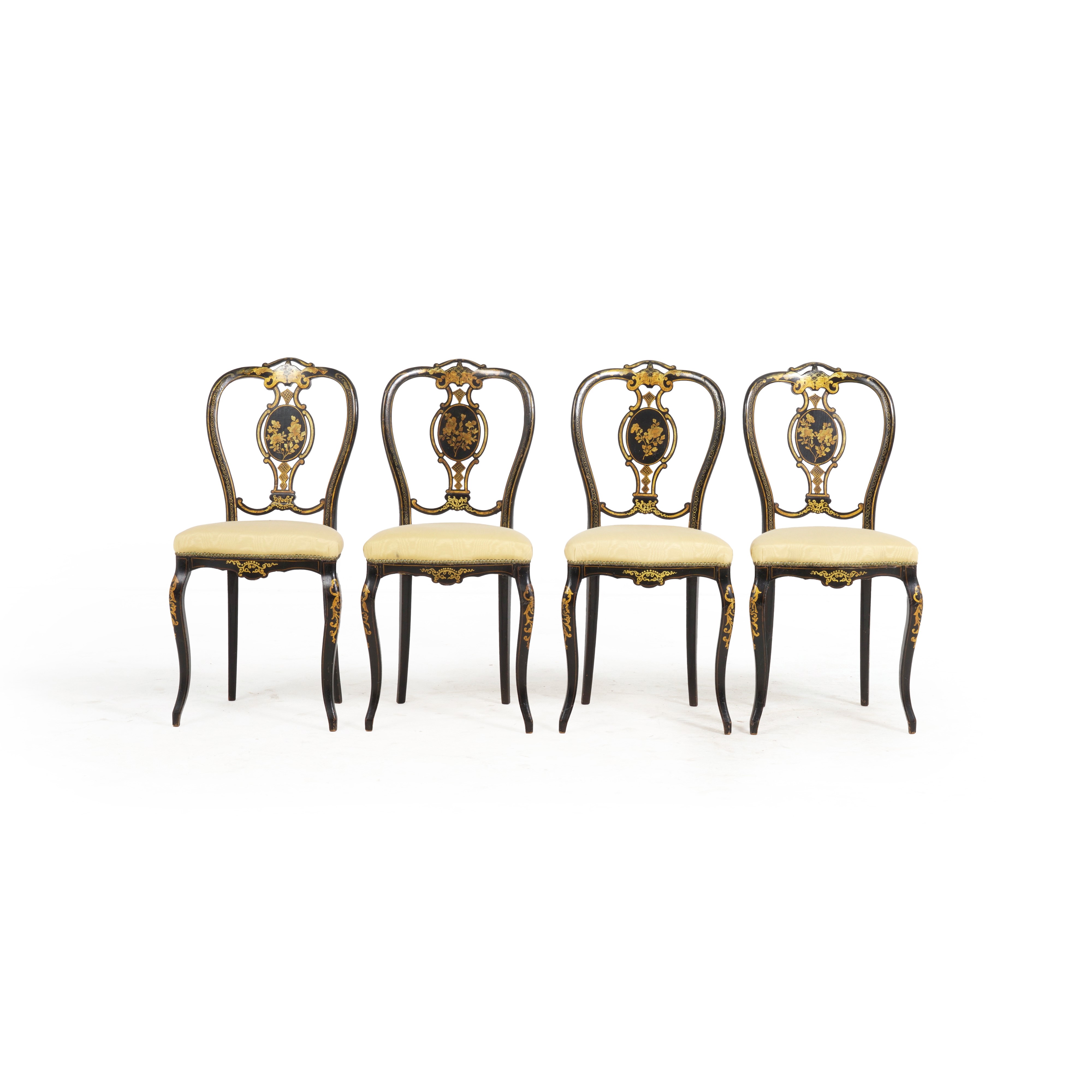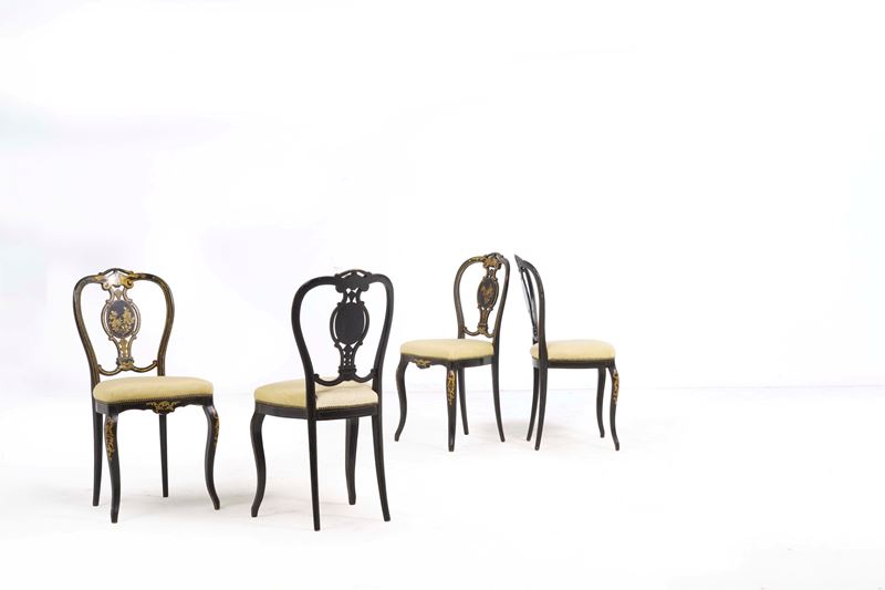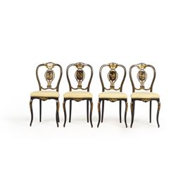Quattro sedie in legno ebanizzato e dorato. XIX secolo