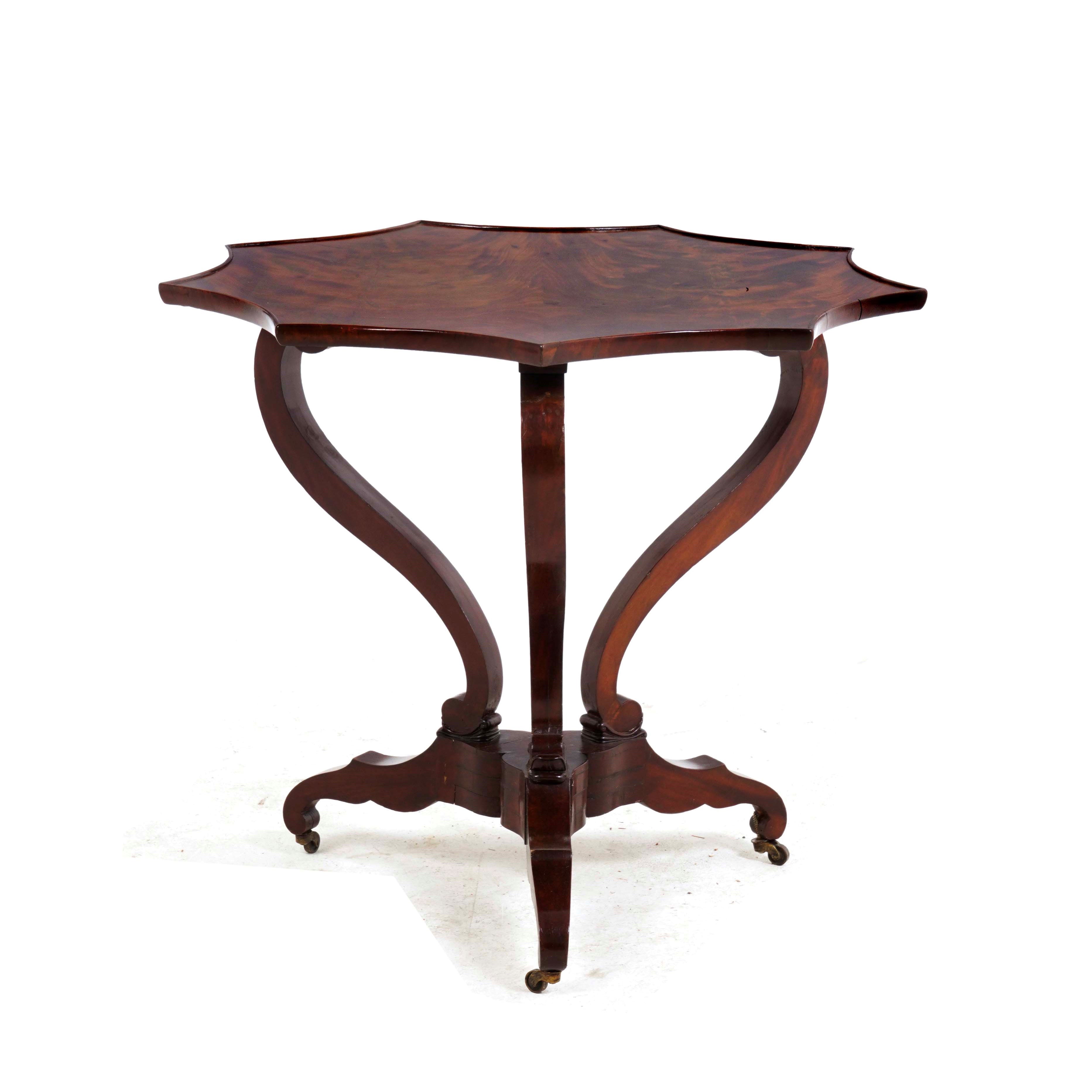 Tavolo lastronato in piuma di mogano. XIX secolo