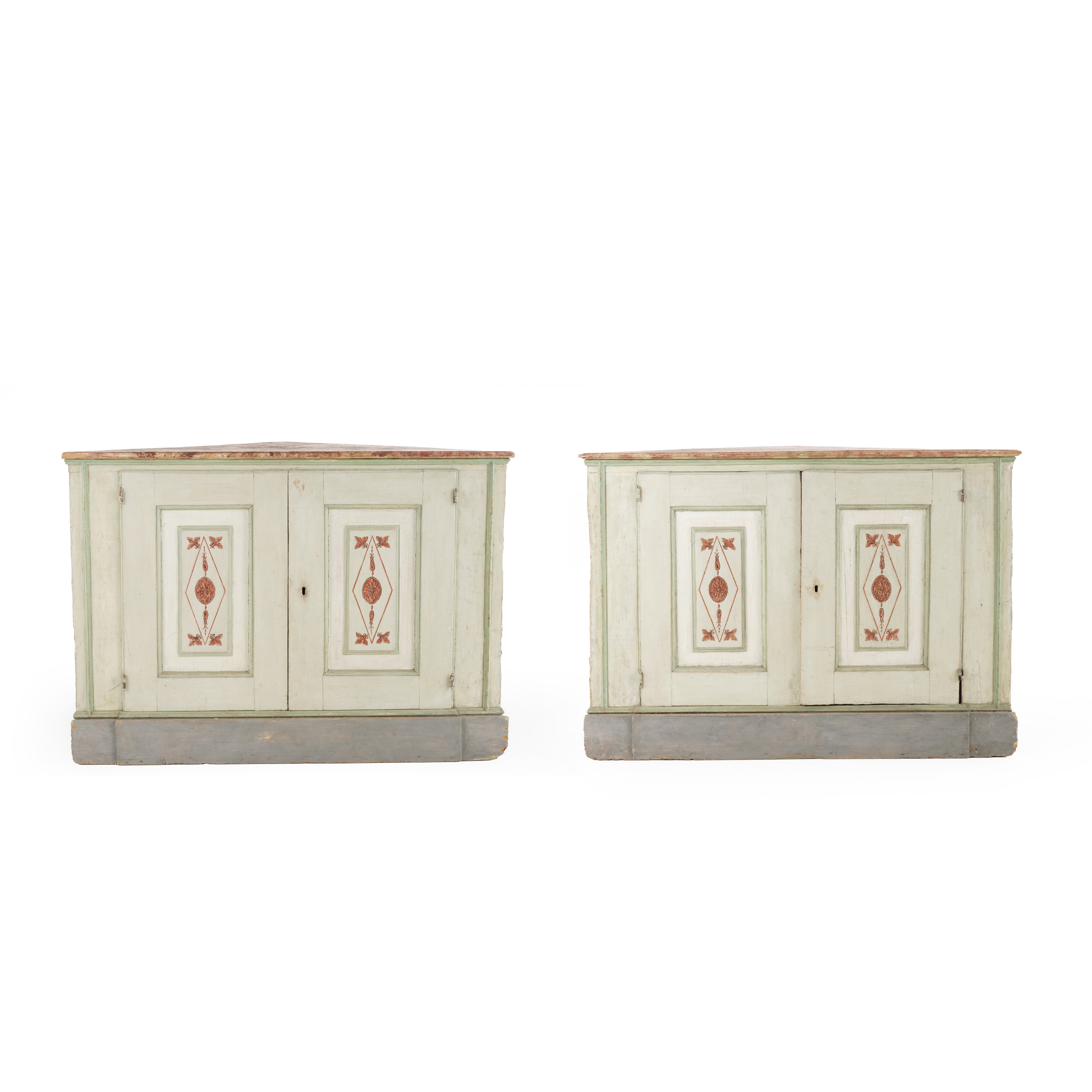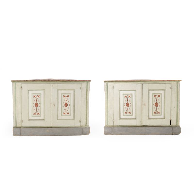 Due angoliere Luigi XVI in legno laccato. XVIII-XIX secolo