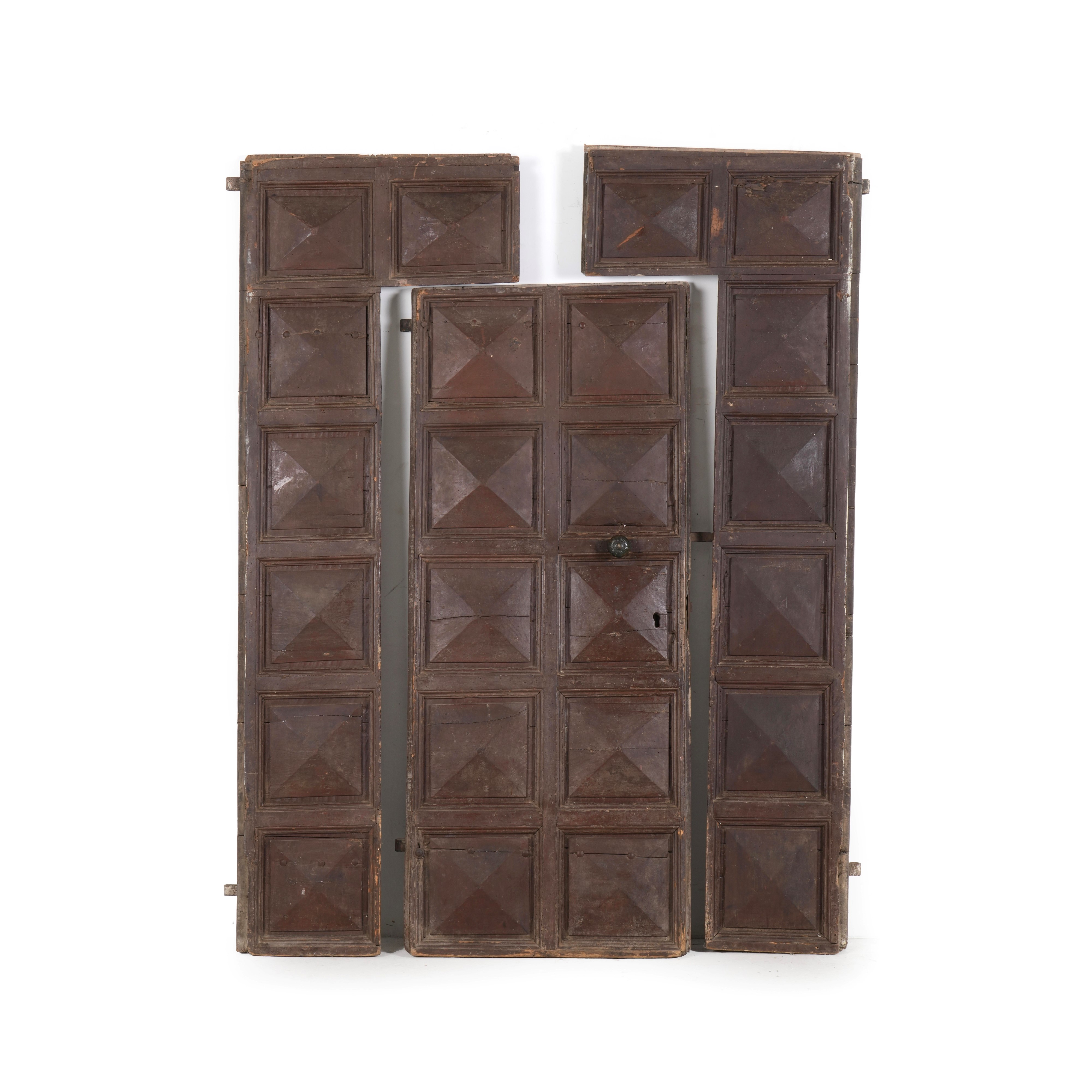 Grande portone bugnato in legno di noce, con lacca coeva. Venezia, XVI secolo