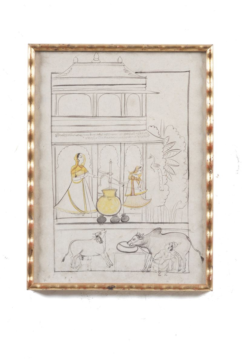 India, disegno con scena di vita quotidiana