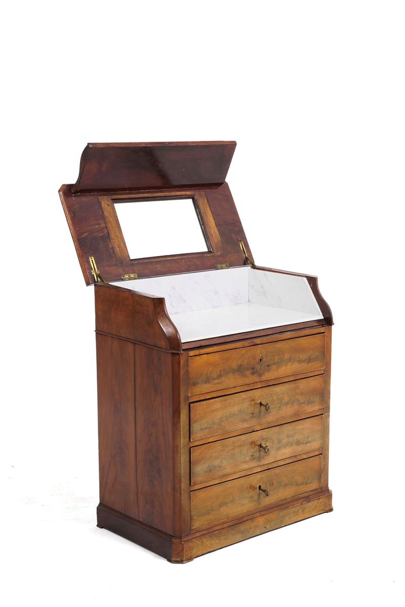Mobiletto toelette a quattro cassetti lastronato in radica