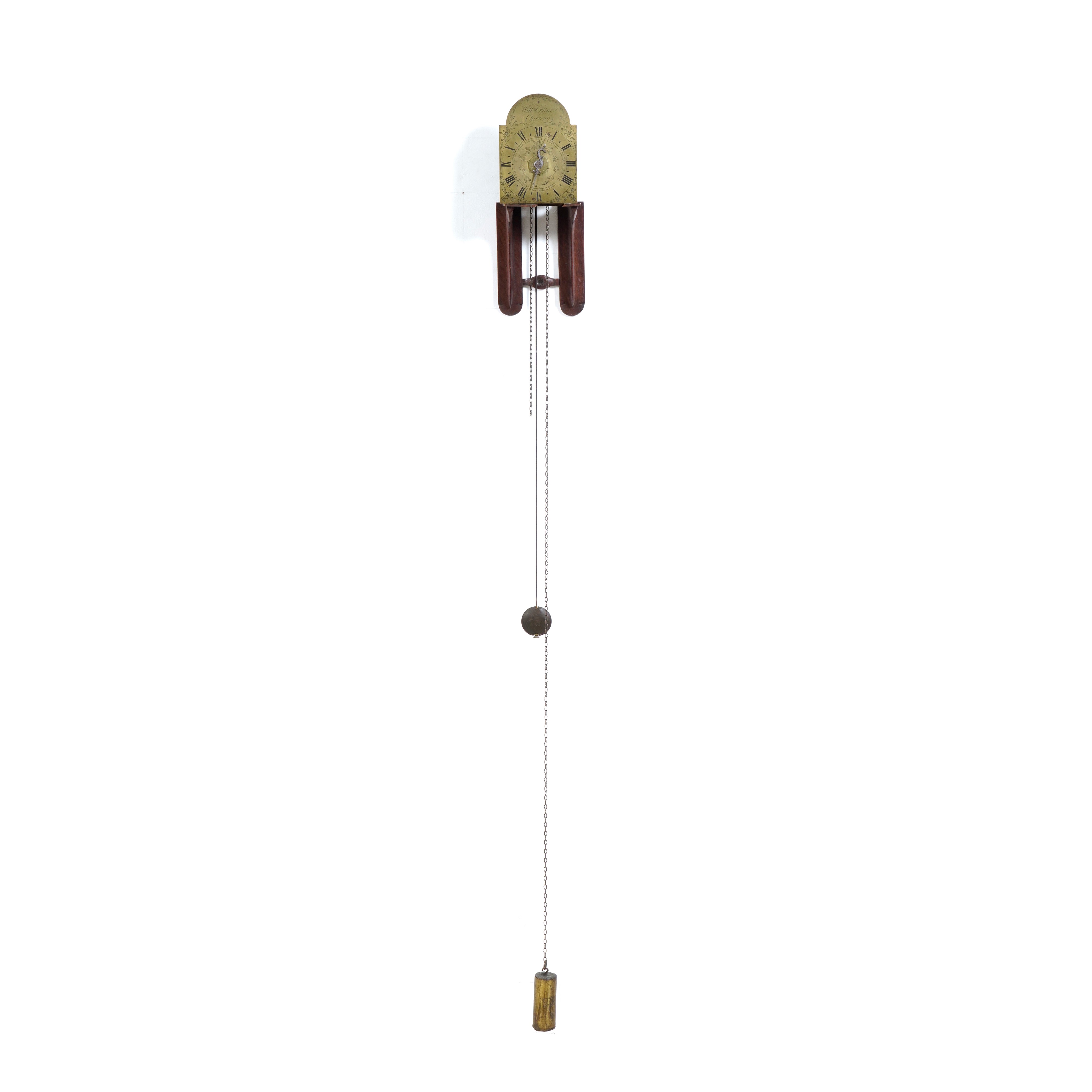 Pendola da muro a lanterna, quadrante in ottone. Firmato William Flint Charing Inghilterra, XVIII secolo