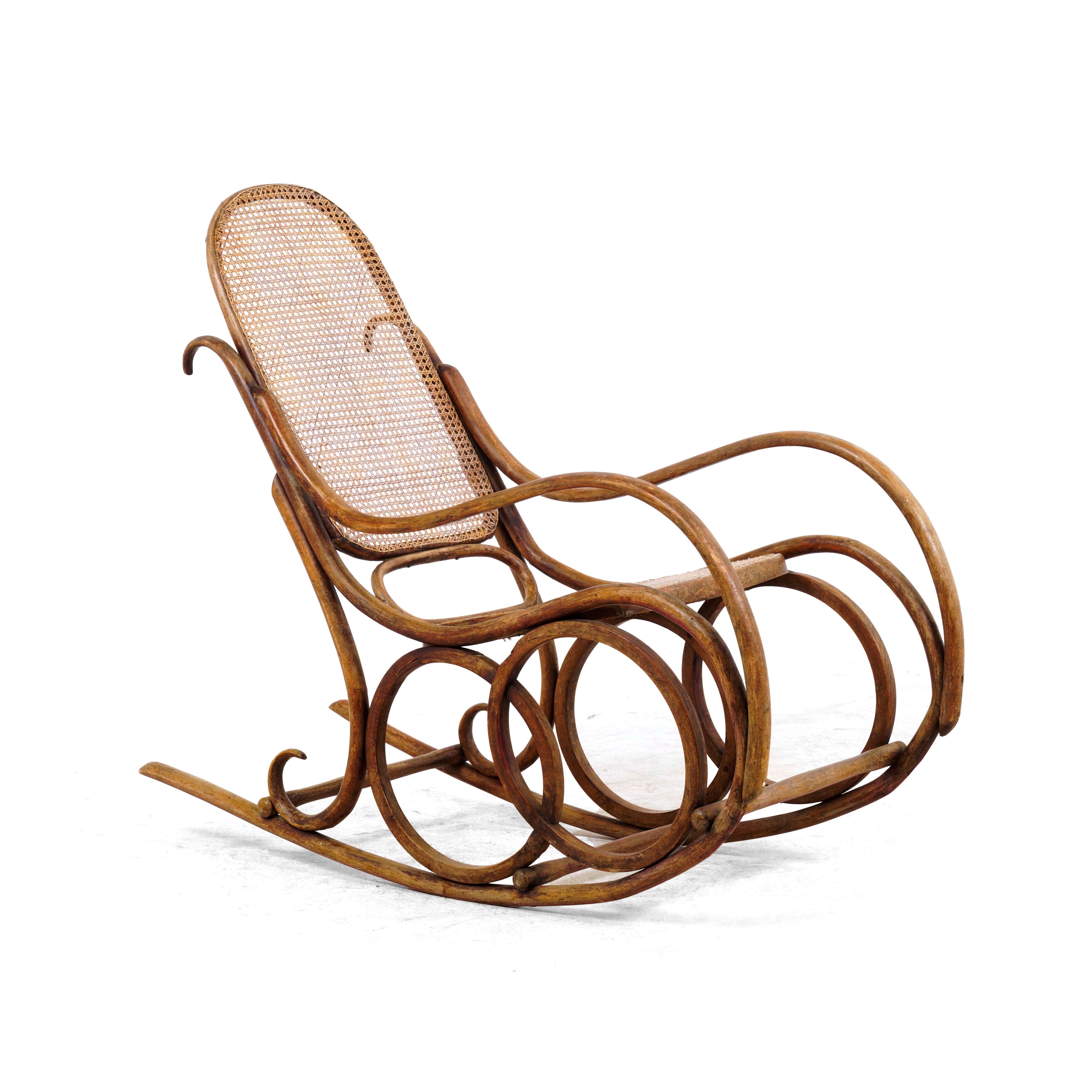 Sedia a dondolo in faggio curvato e cannetè