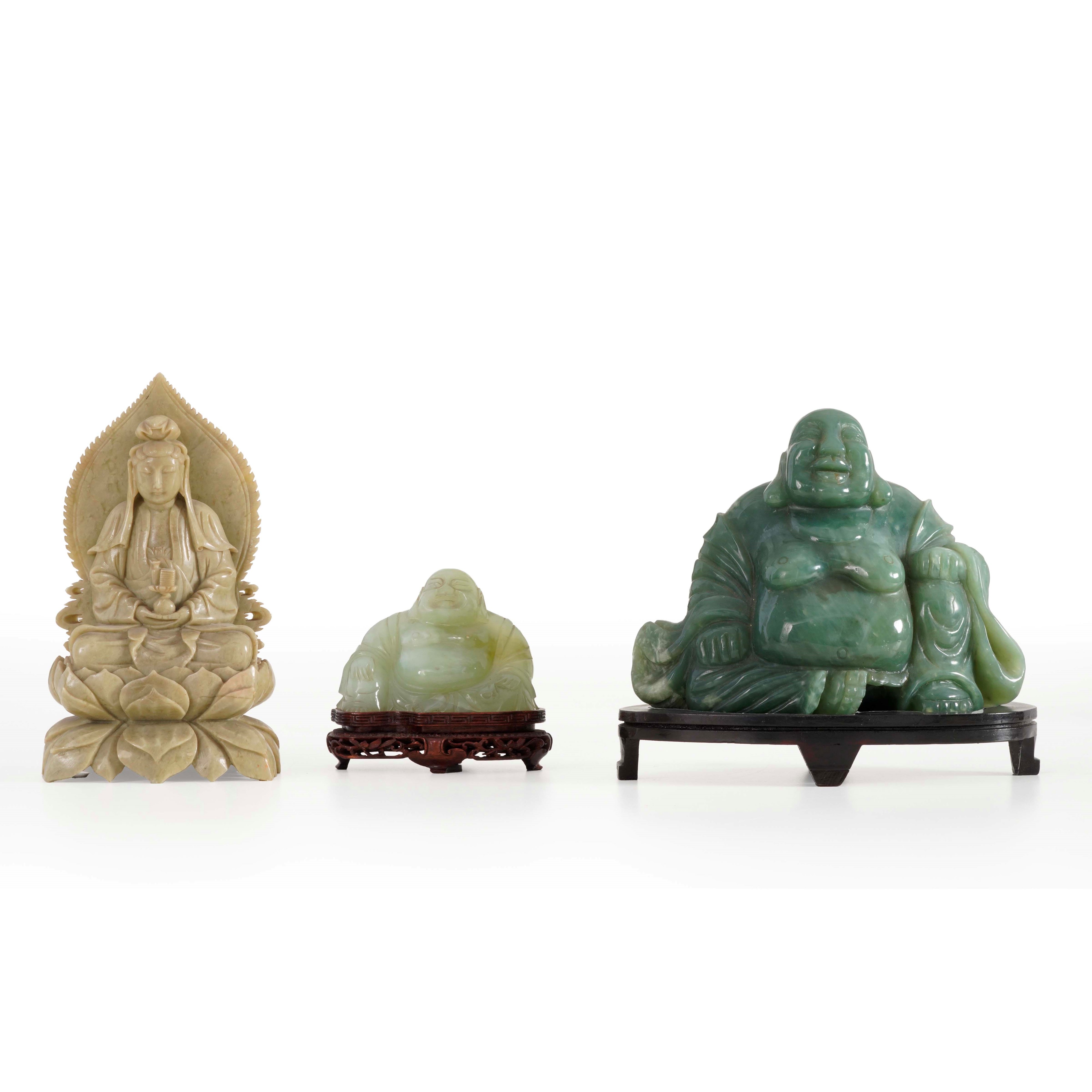 Tre figure di divinità orientali in pietra dura