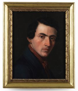 reca al retro antica iscrizione che identifica l'opera come un probabile autoritratto dell'artista realizzato nel 1842 a Bergamo