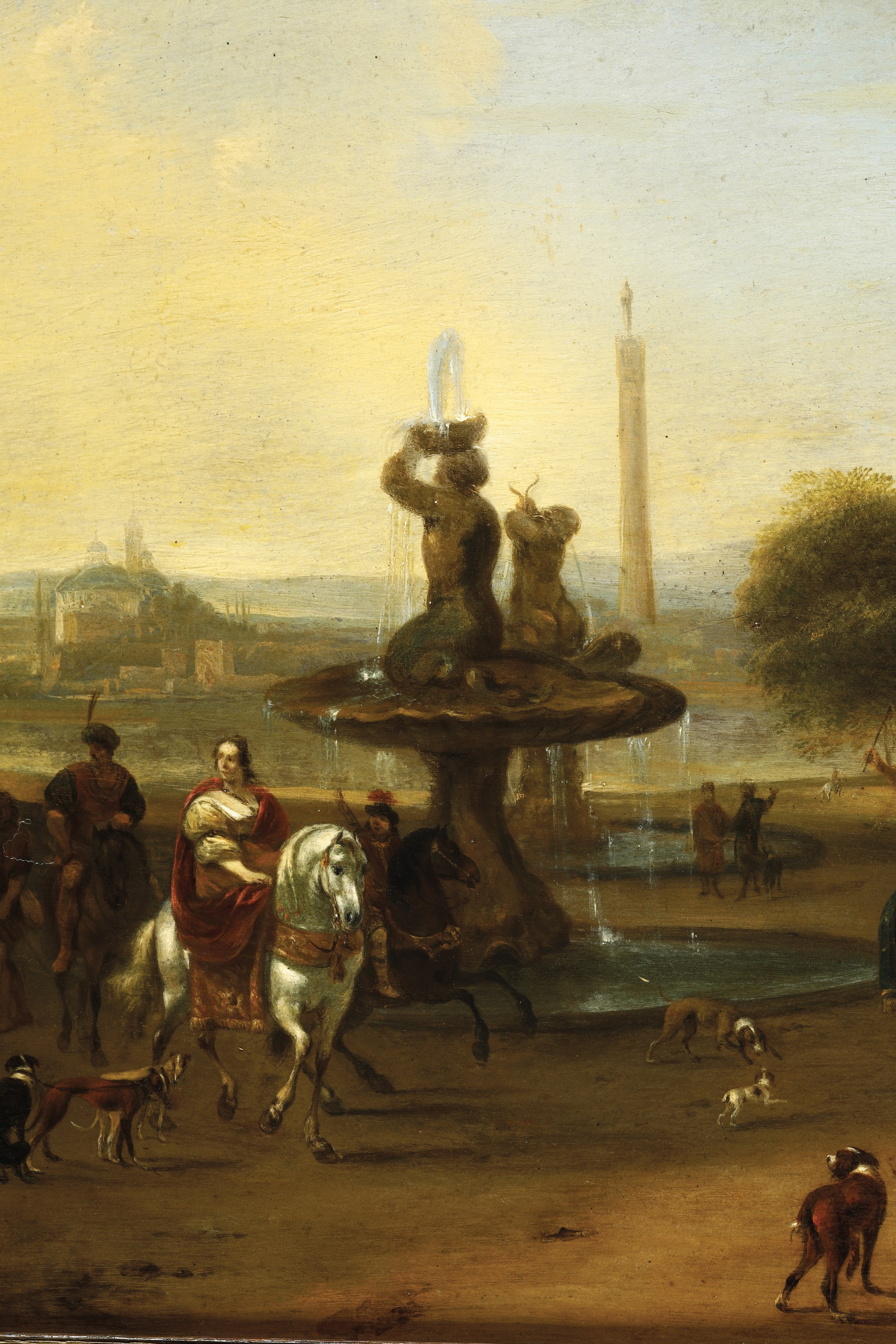 Artista fiammingo del XVII secolo Veduta di giardino con figure
