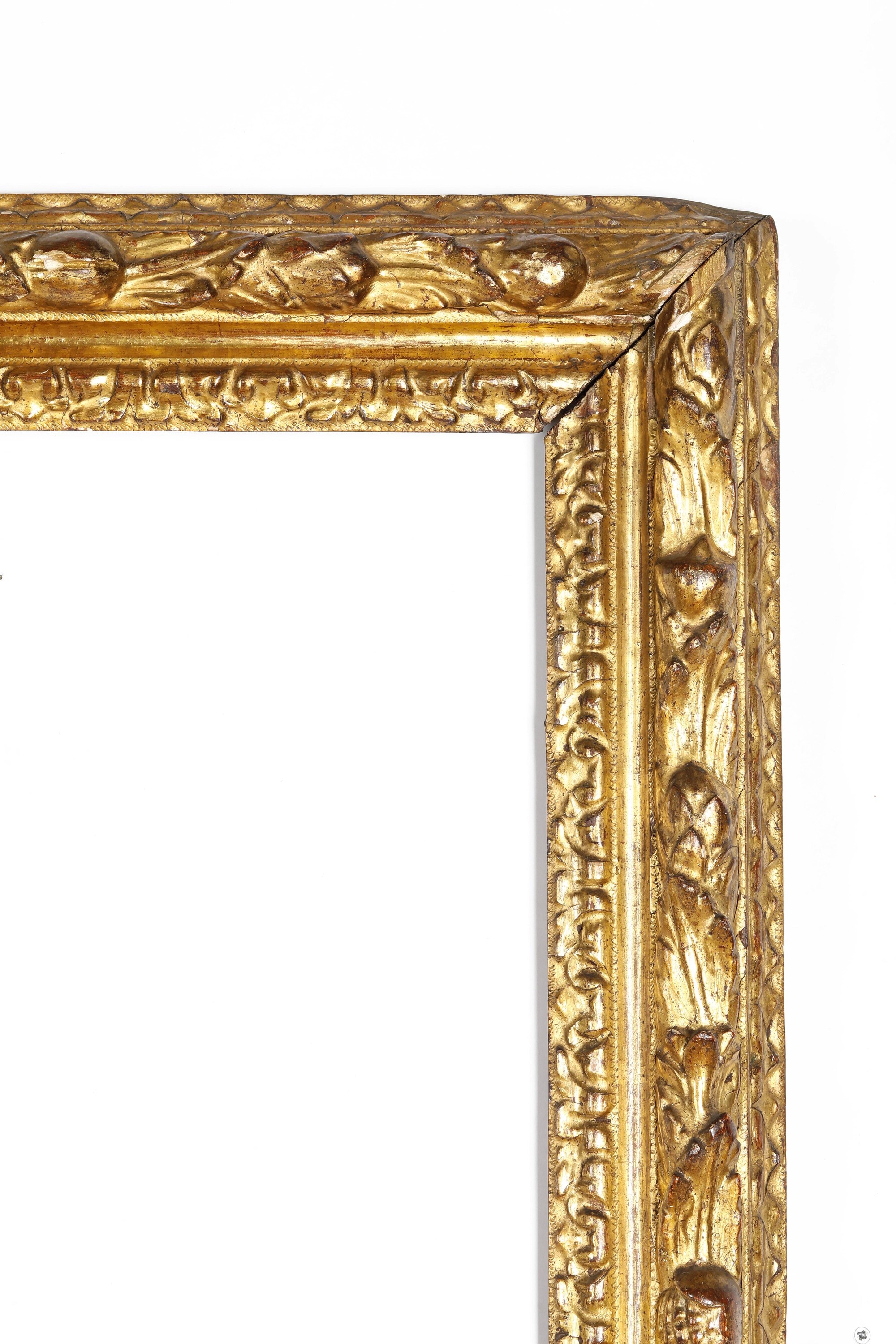 battuta intagliata a mezze fogli, fascia con motivi di frutta e fogliesusseguenti