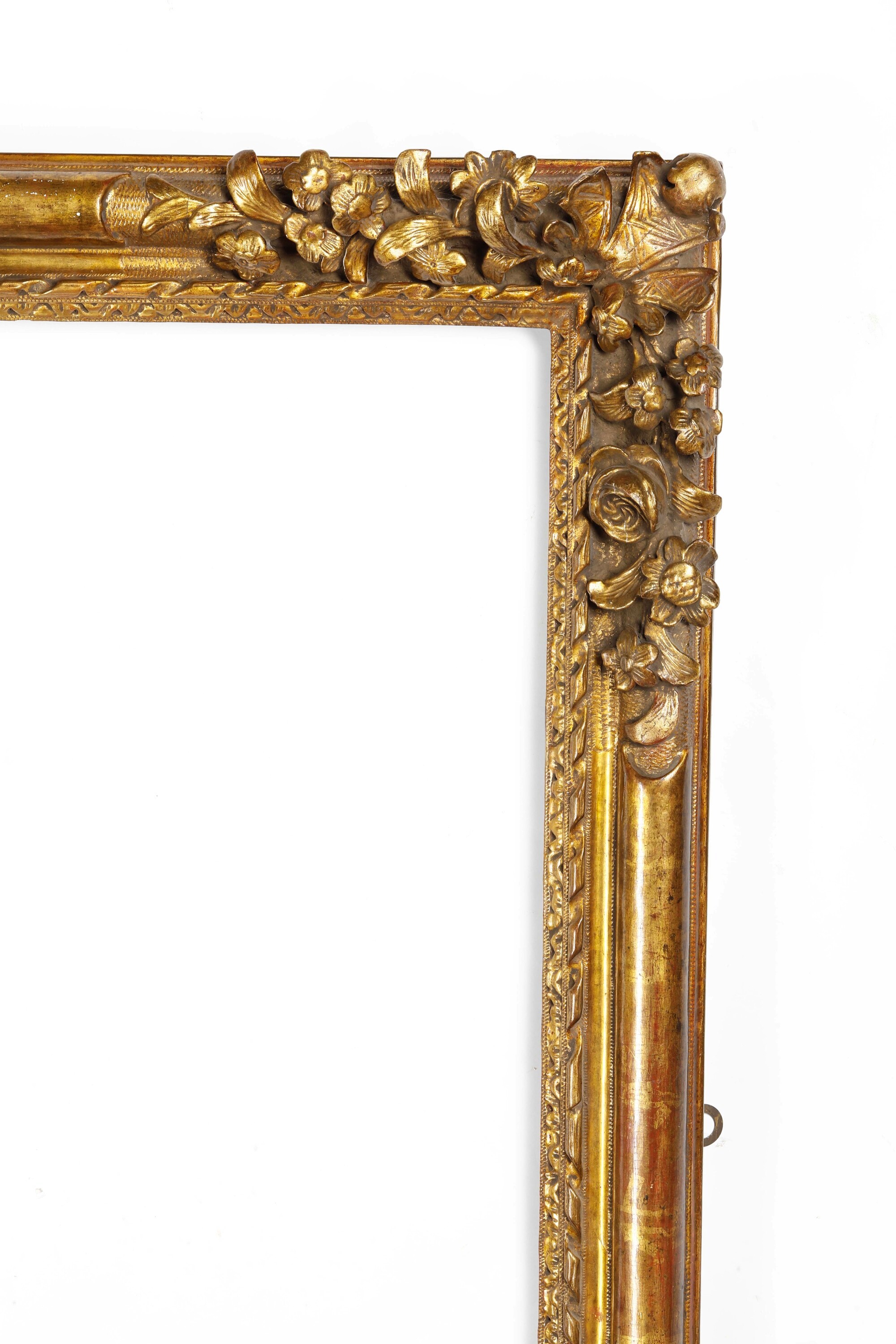 battuta intagliata ad unghiature, fascia con angoli decorati da ramages vegetali e floreali