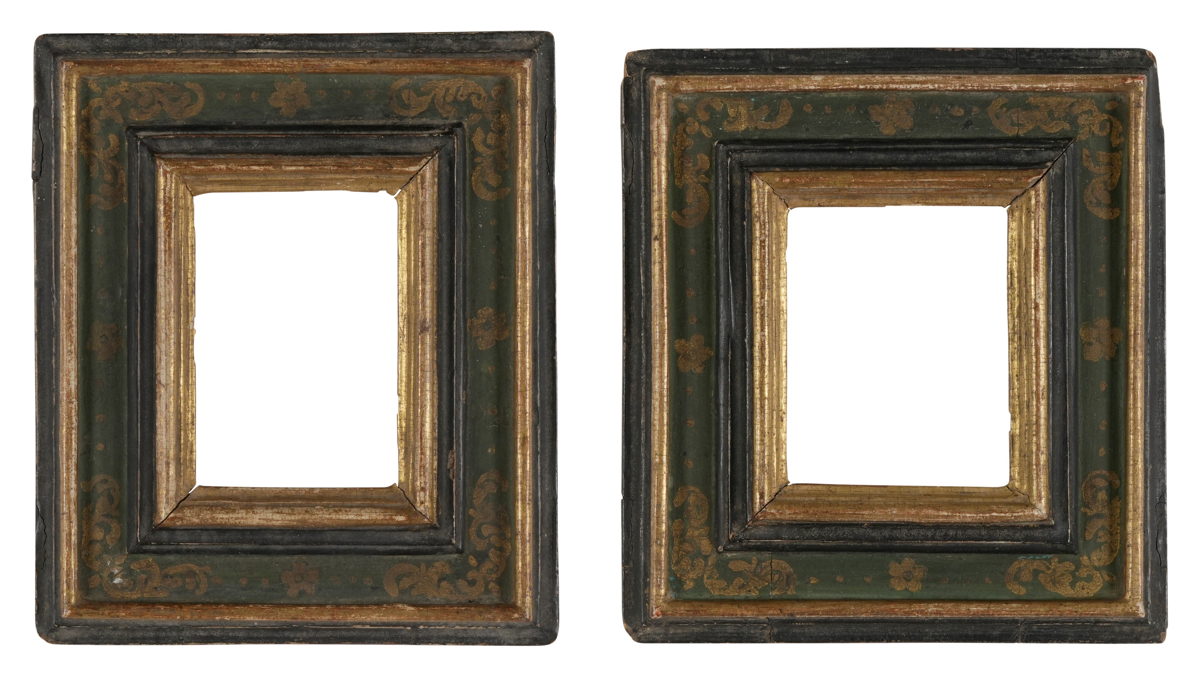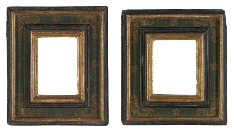 battuta dorata, fascia con sagoma a cassetta dipinta aglia angoli con ramages vegetali e con fiori ai centri
