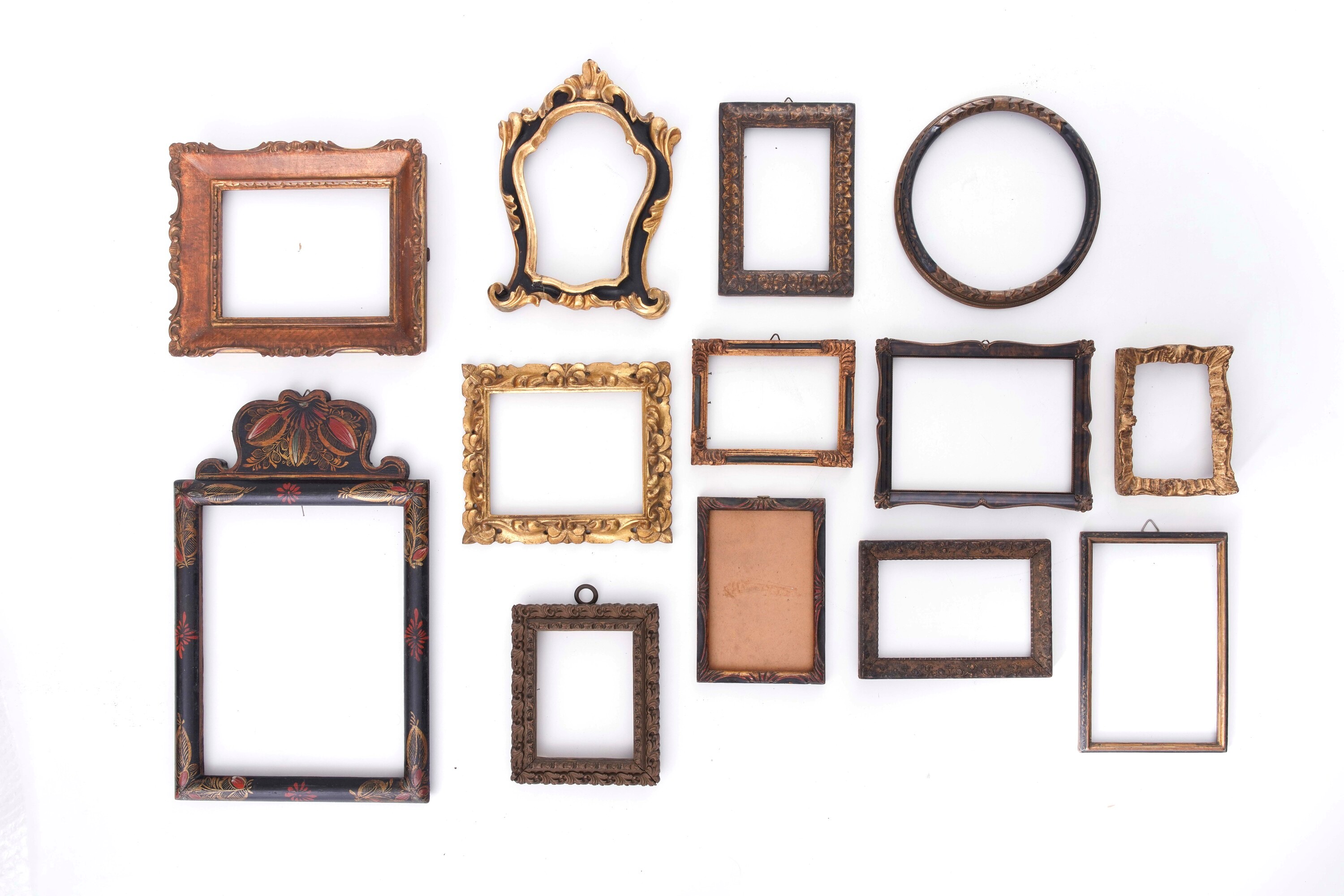 Lotto di 13 cornicette dorate e dipinte