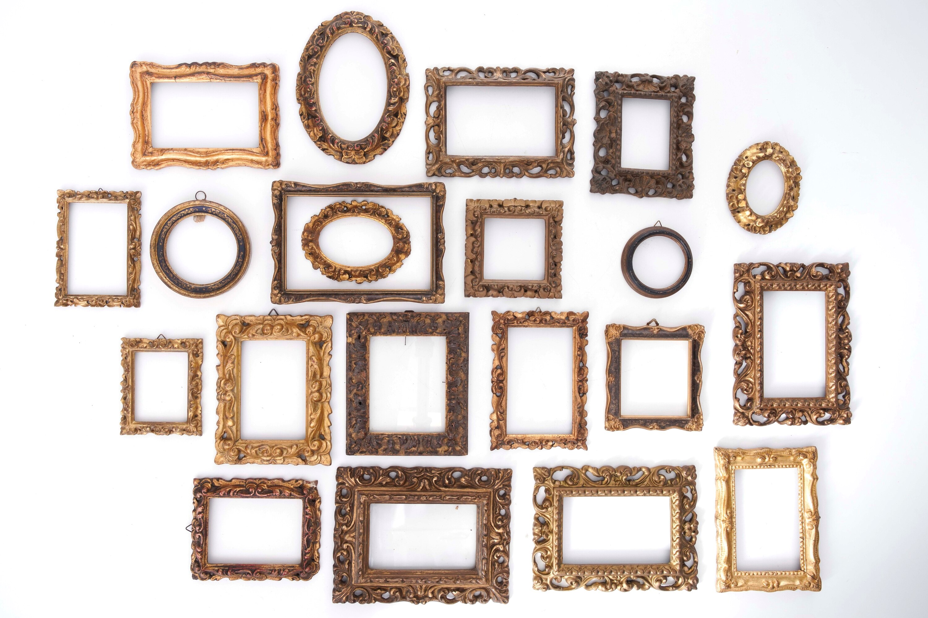 Lotto di 21 cornicette dorate