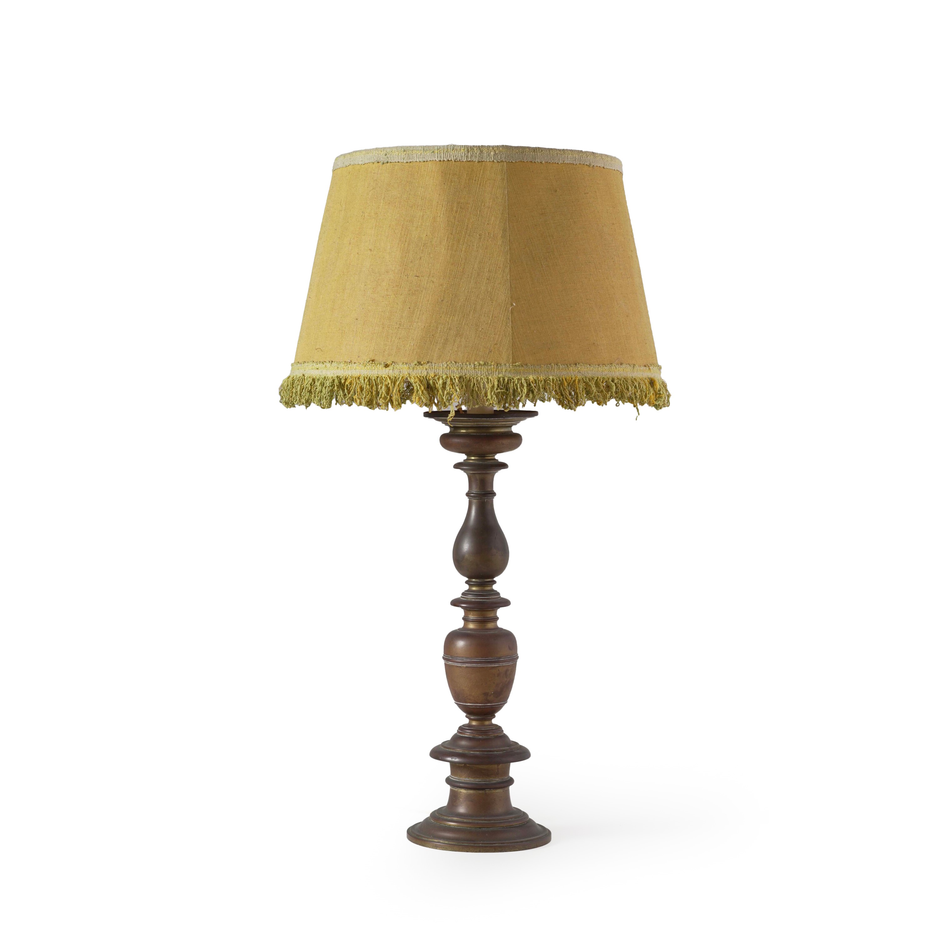 Bronzo fuso. Fusto tornito, convertito in abat jour elettrificata