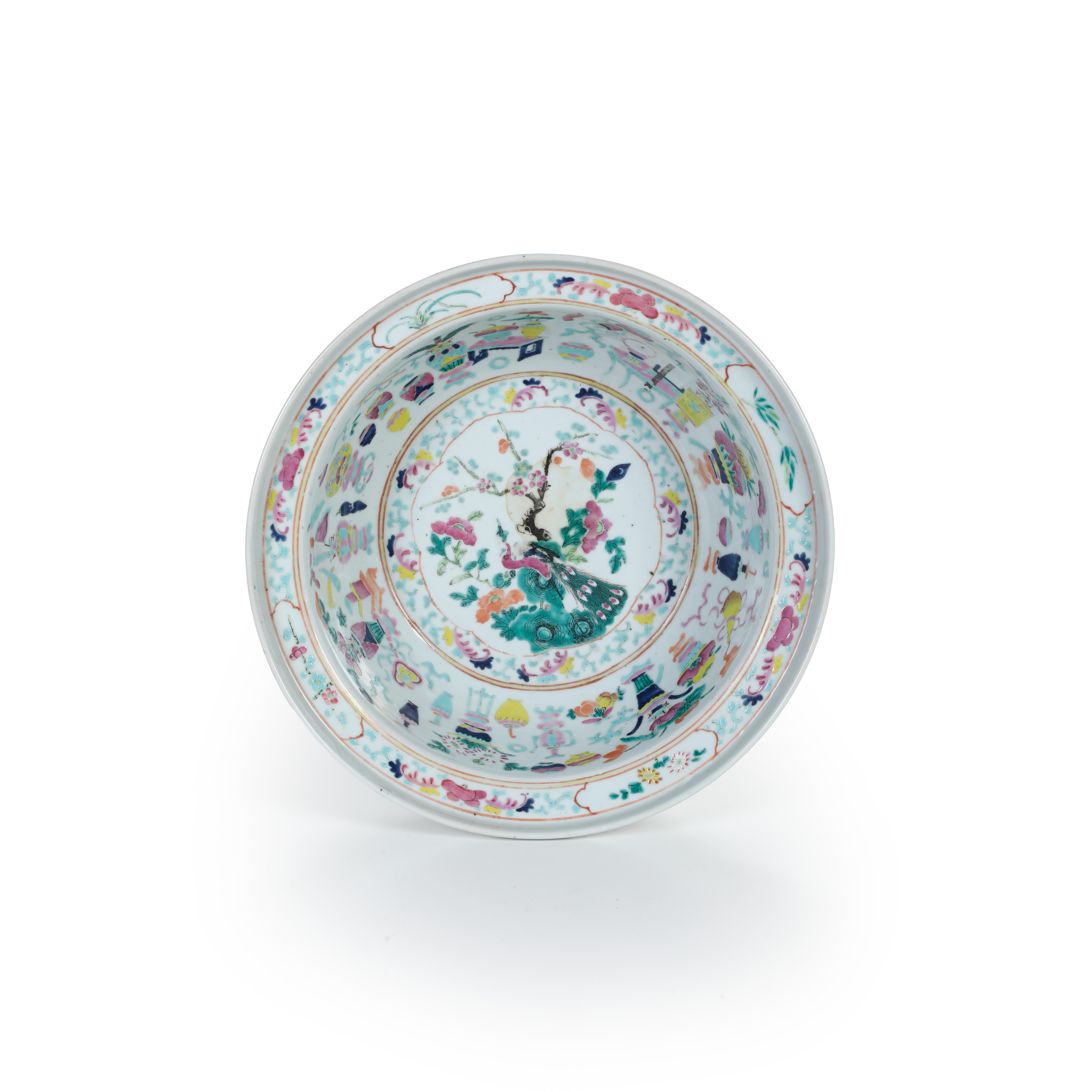 Ciotola in porcellana Famiglia Rosa raffigurante fenice con decori a motivi geometrici e vegetali, Cina, Dinastia Qing, XIX secolo