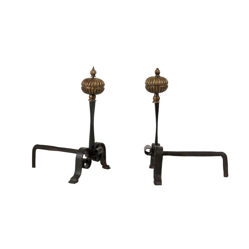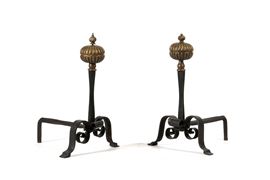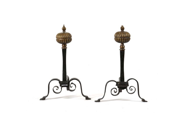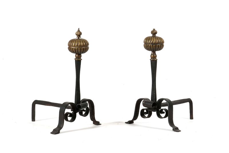 Coppia di alari in ferro battuto. XVIII-XIX secolo