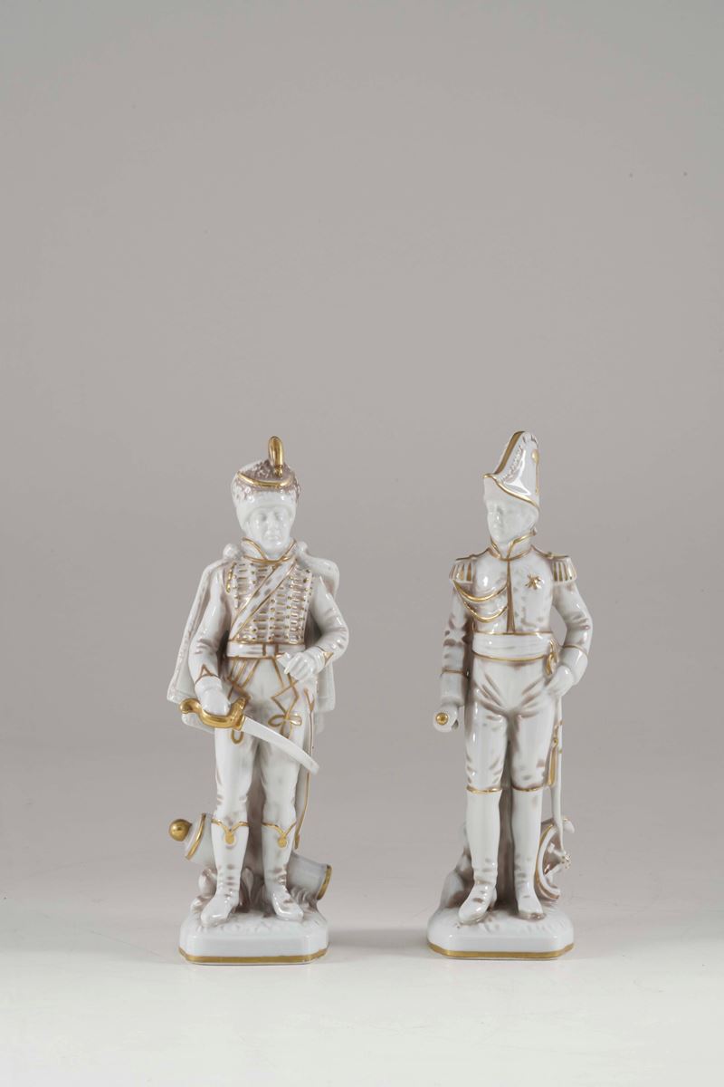 Coppia di figurine di militari. Germania, Manifattura Bavarese, XX secolo.