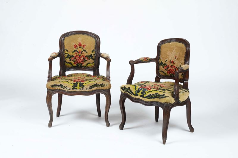 Coppia di poltrone cabriolet Luigi XV. Piemonte, XVIII secolo