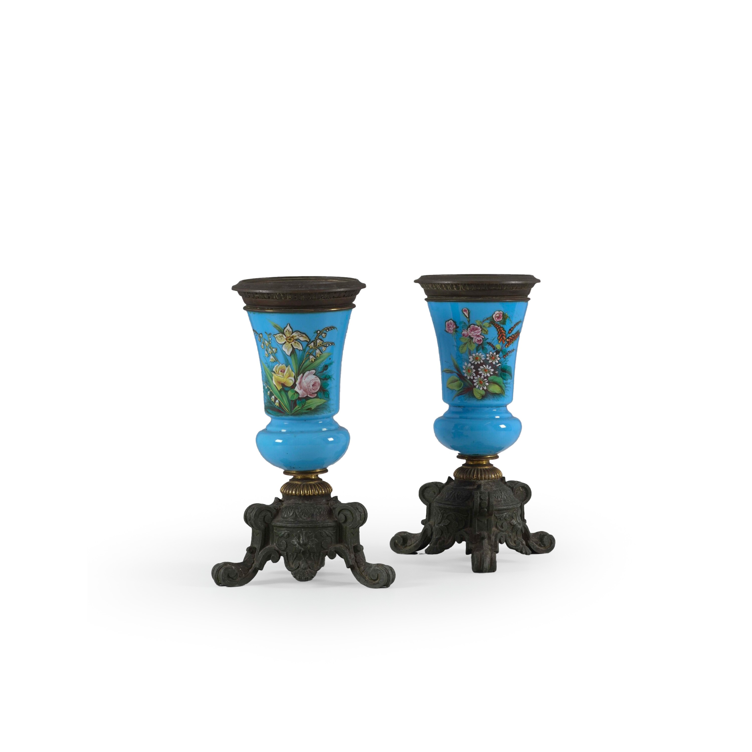 Vetro opalino e metallo. Altezza cm 32. Conservazione: ottima